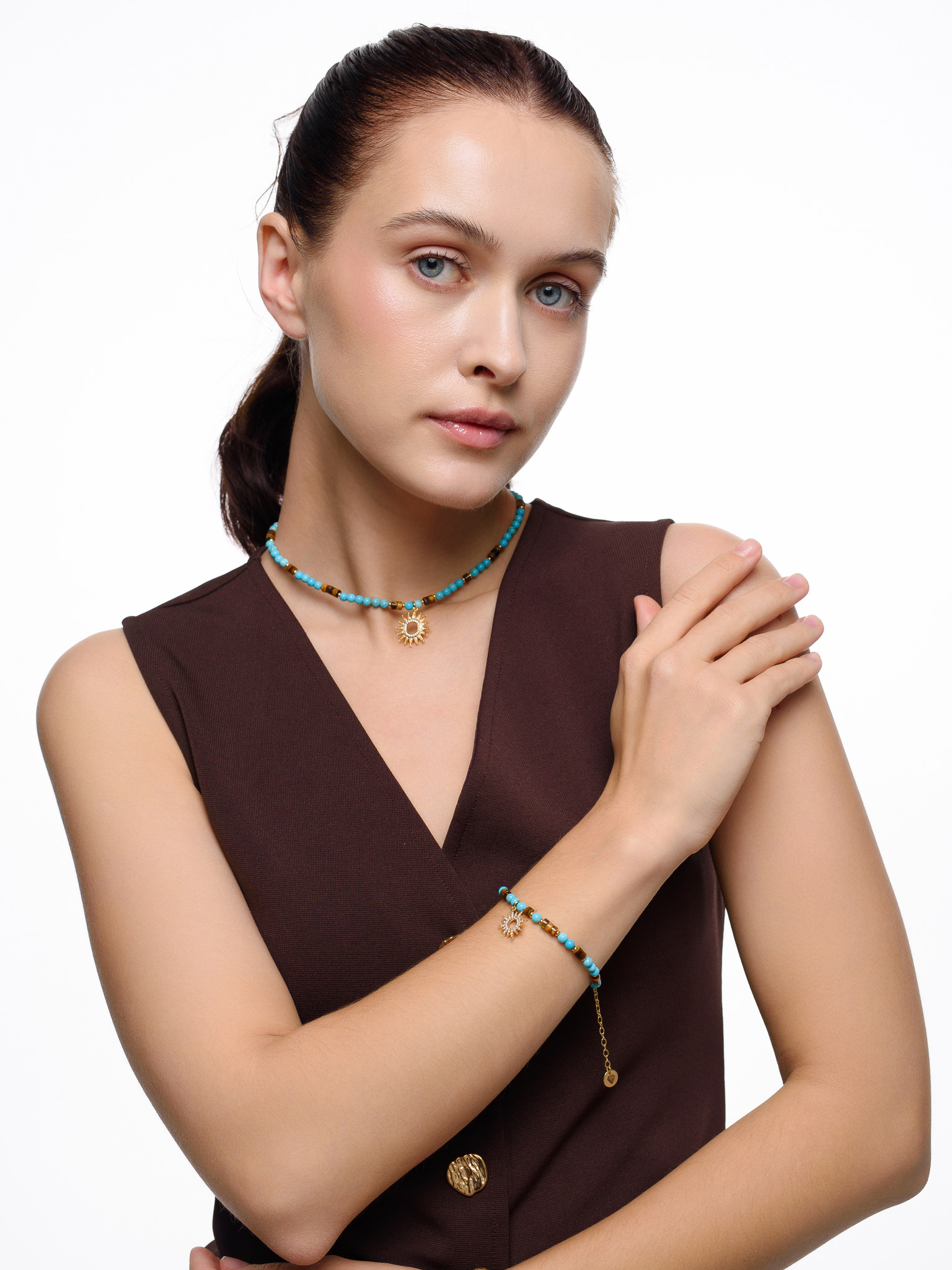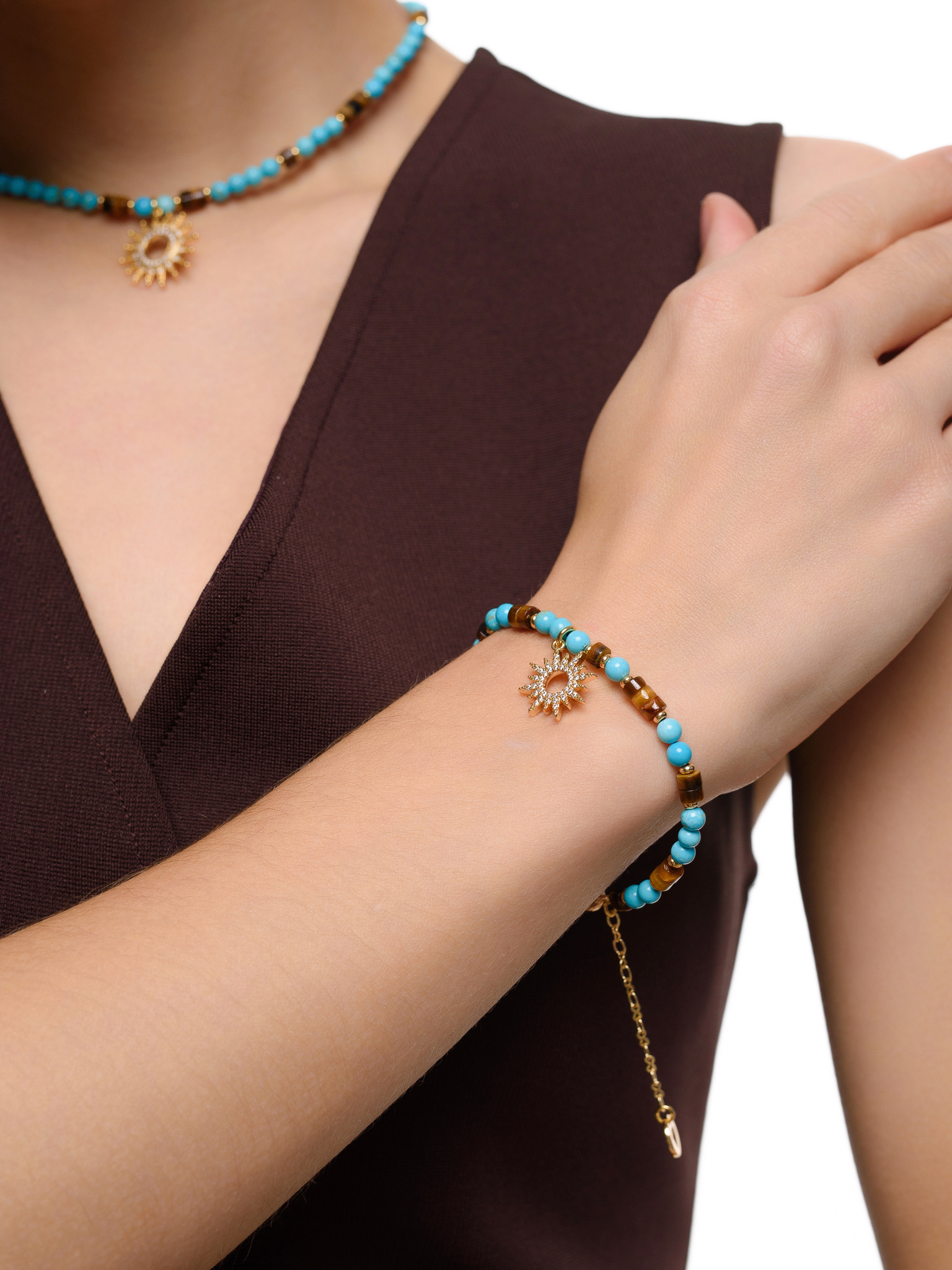 Браслет "Sun" с турквенитом и тигровым глазом Gold