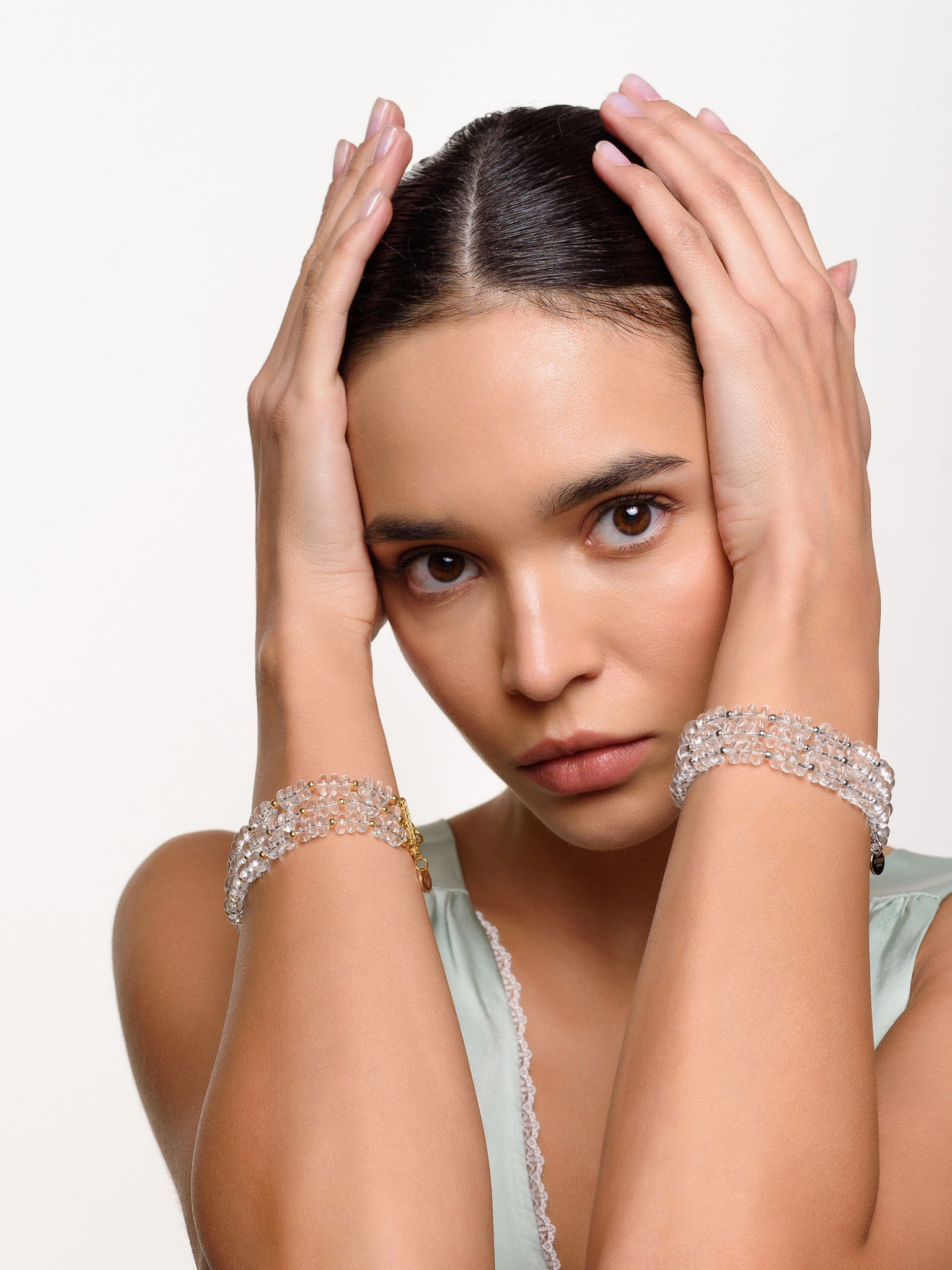 Браслет "White night" из горного хрусталя Gold