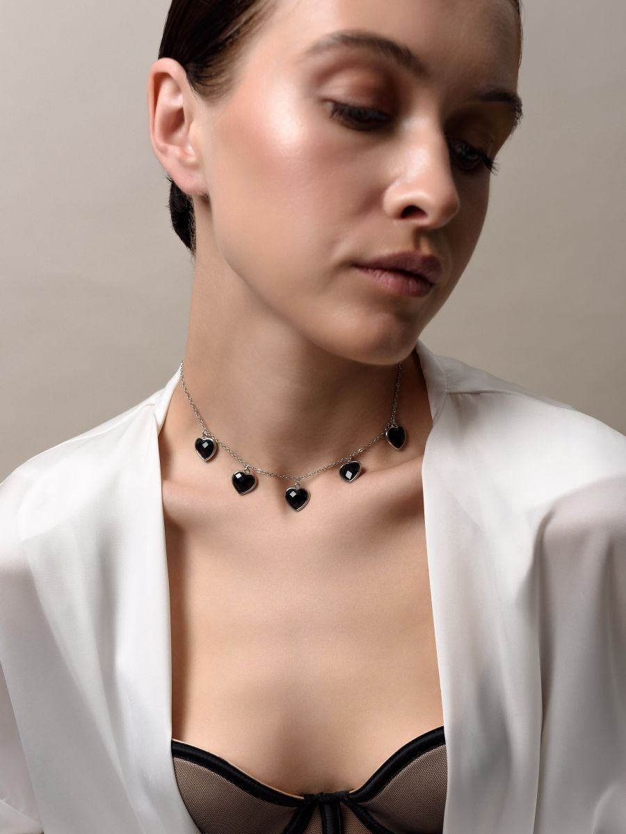 Чокер "Amour" с черным агатом Silver
