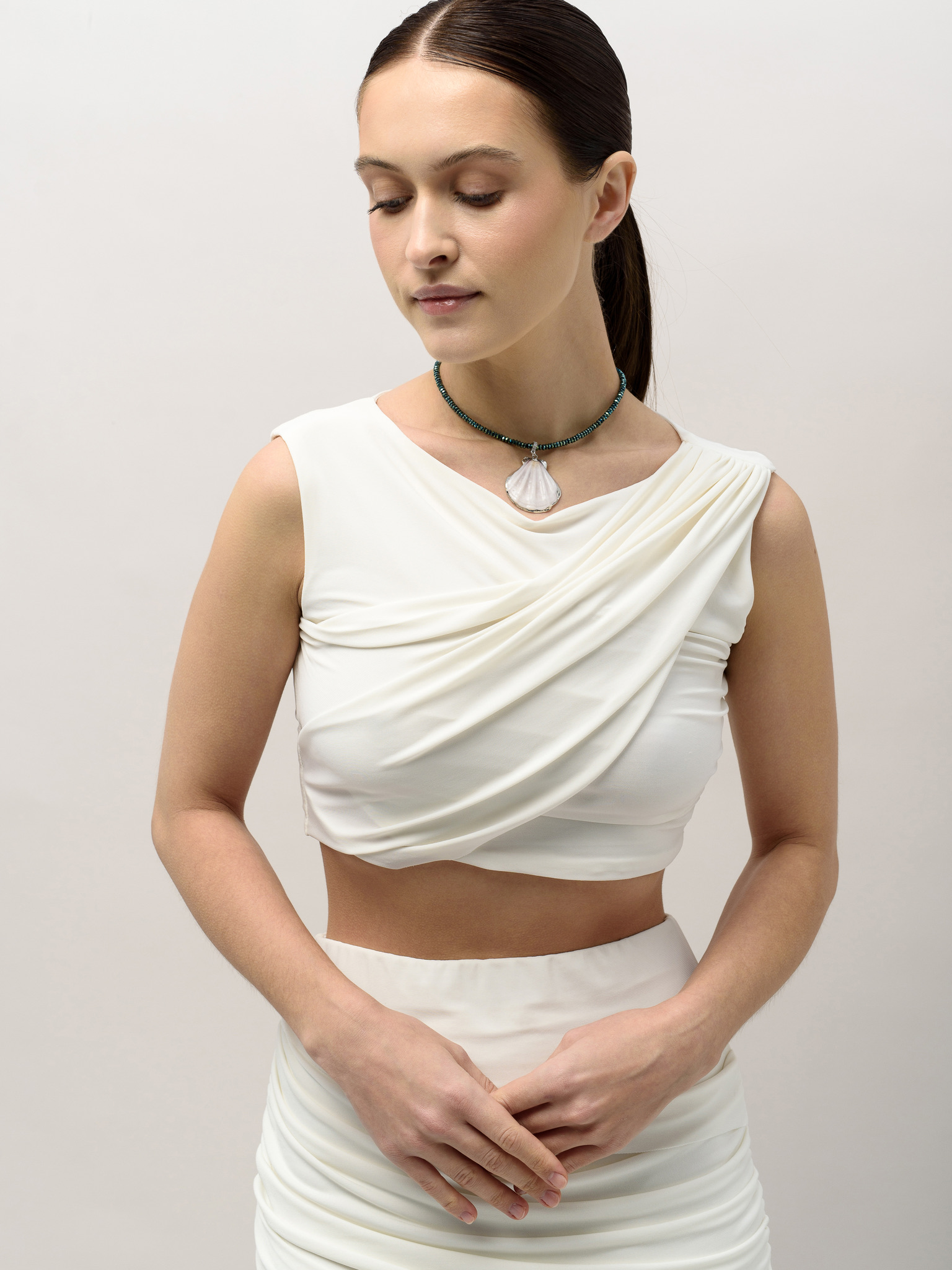 Чокер "Natural shell green" Silver