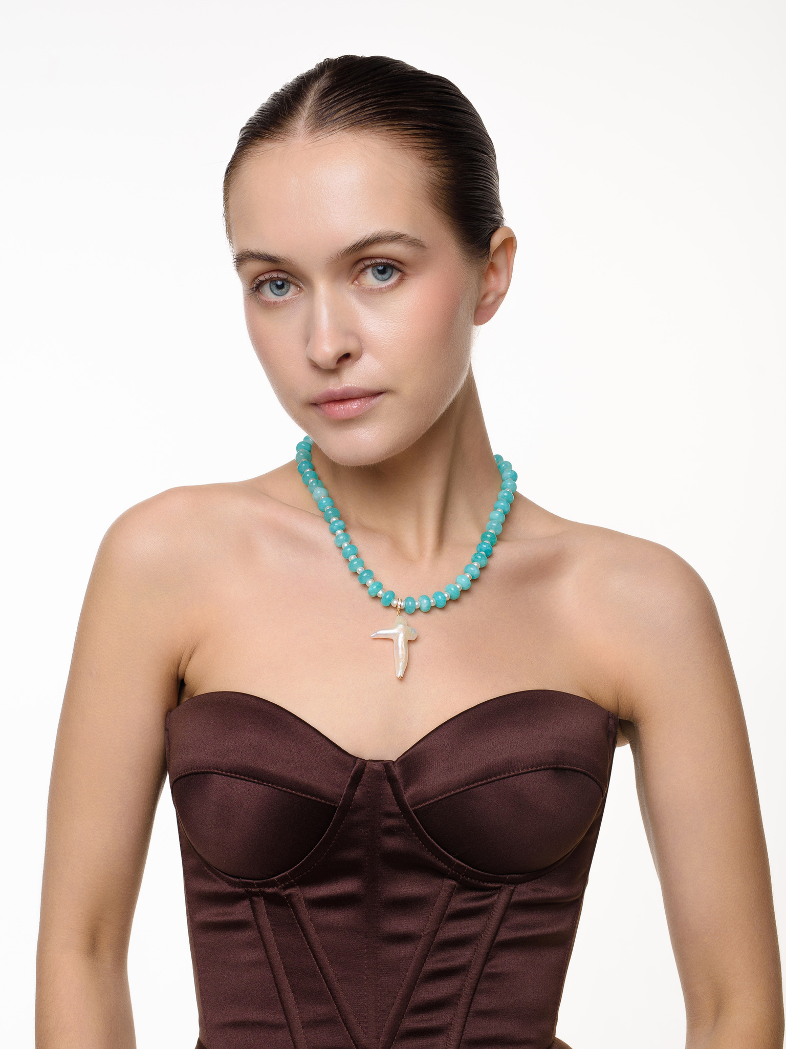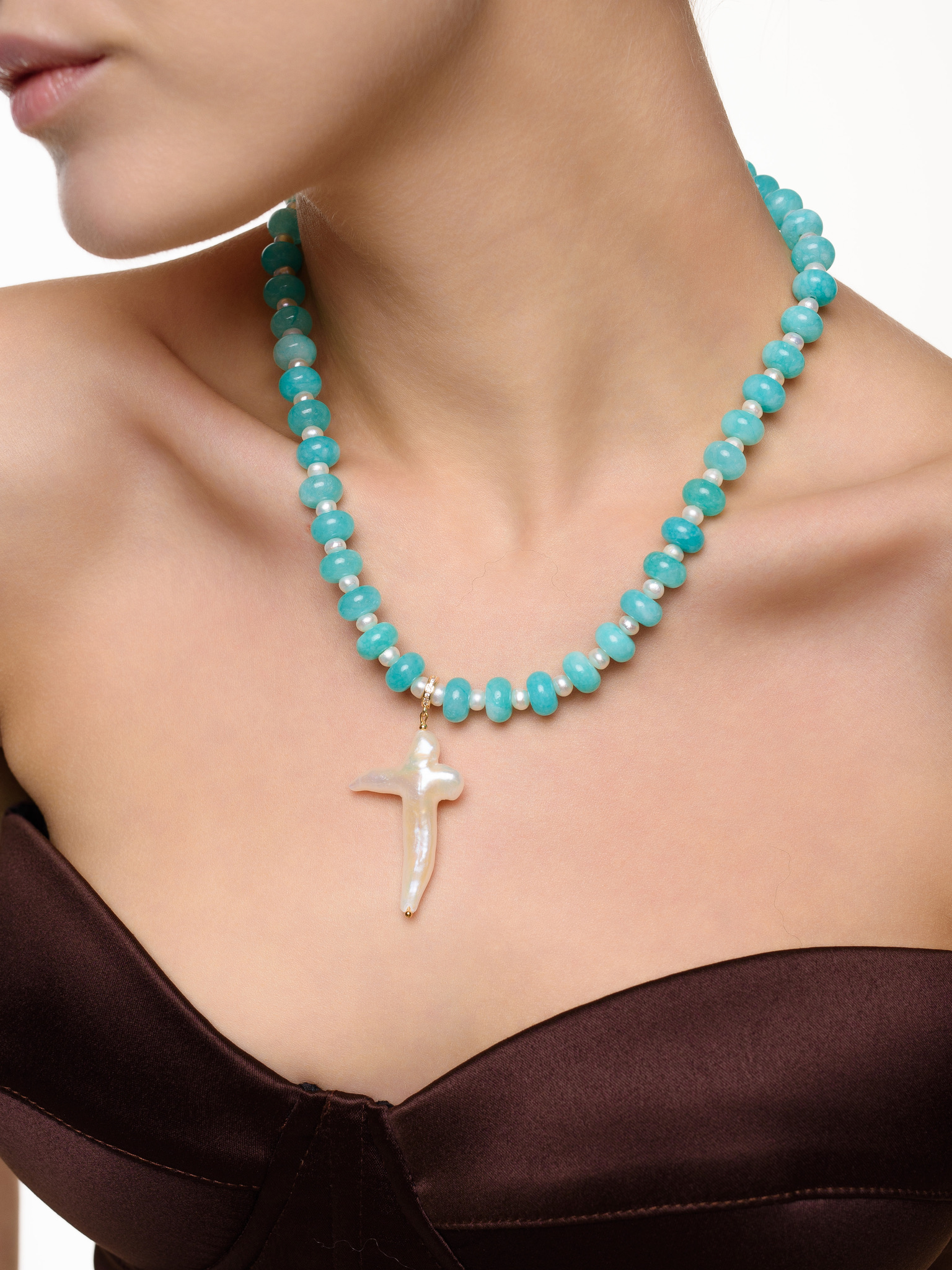 Чокер "Sea pearl cross blue" Gold