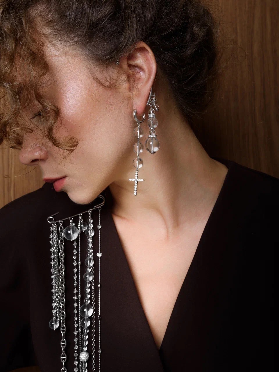 Кафф "Bubble mini easy" с горным хрусталем Silver