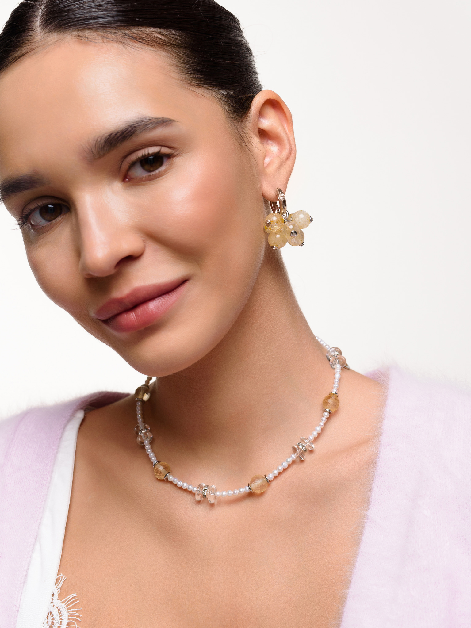 Колье "Citrine pearl" Silver