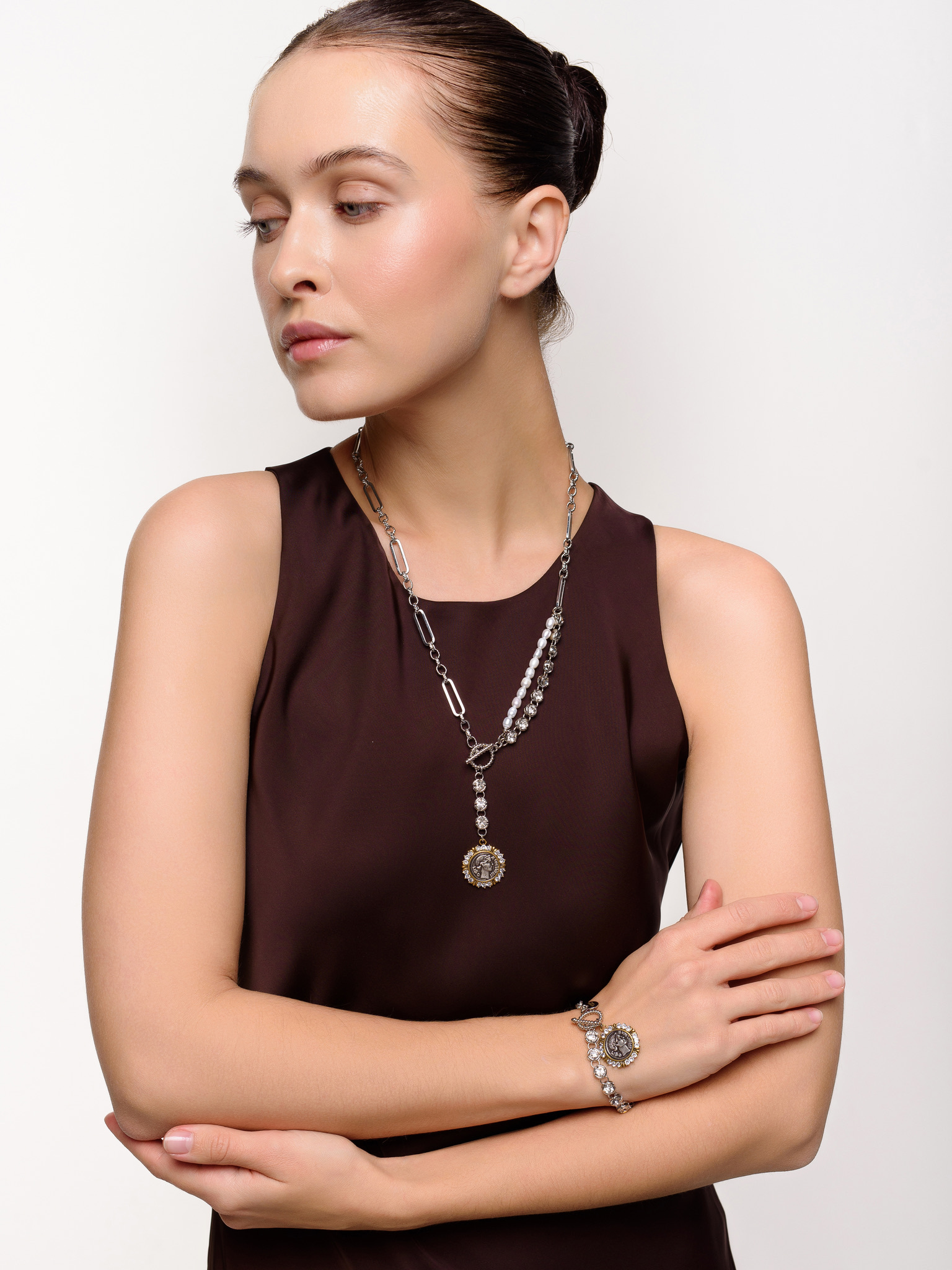 Колье "Coin rich pearl" Bicolor