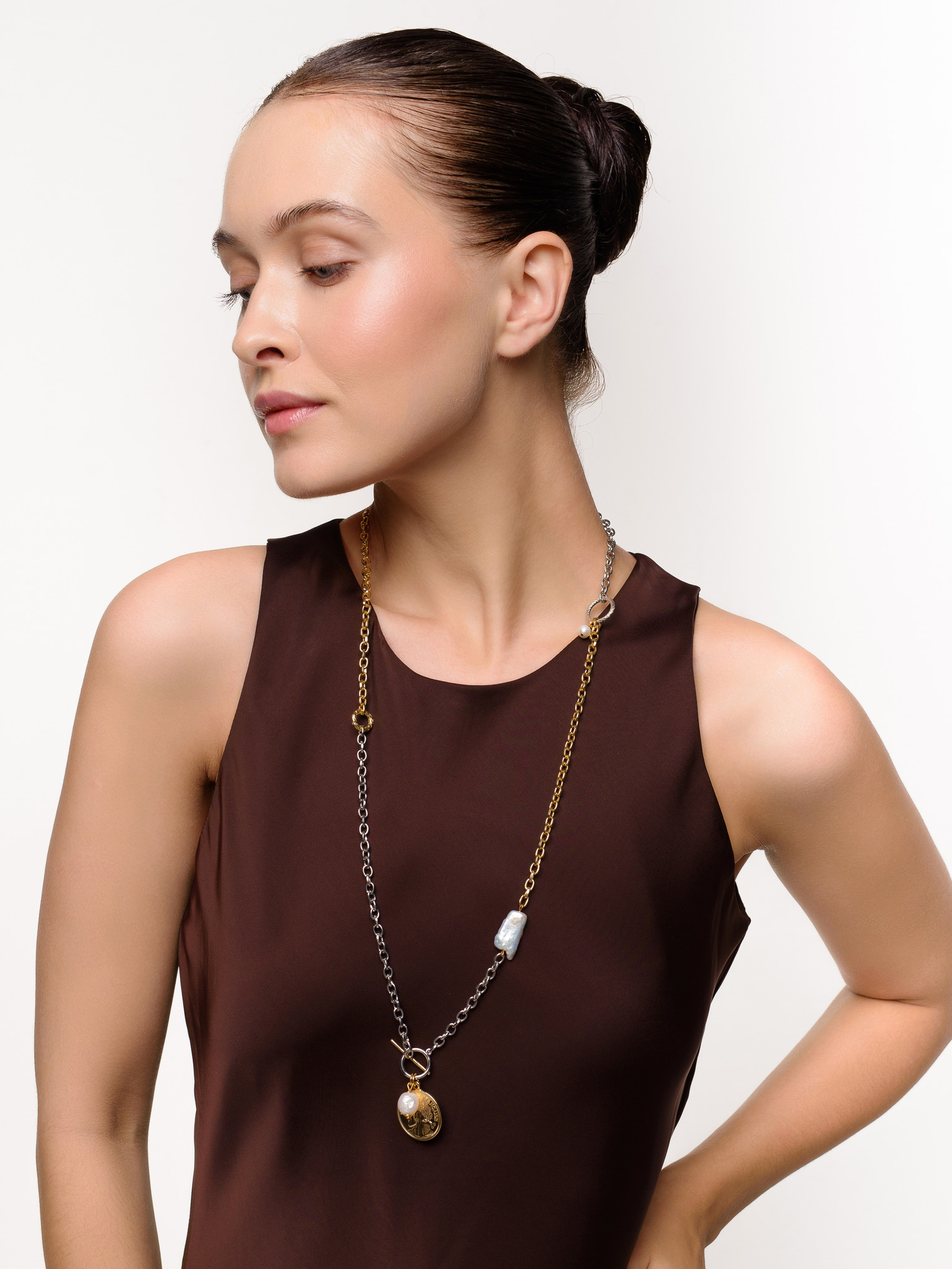 Колье "Coin segments pearl" Bicolor