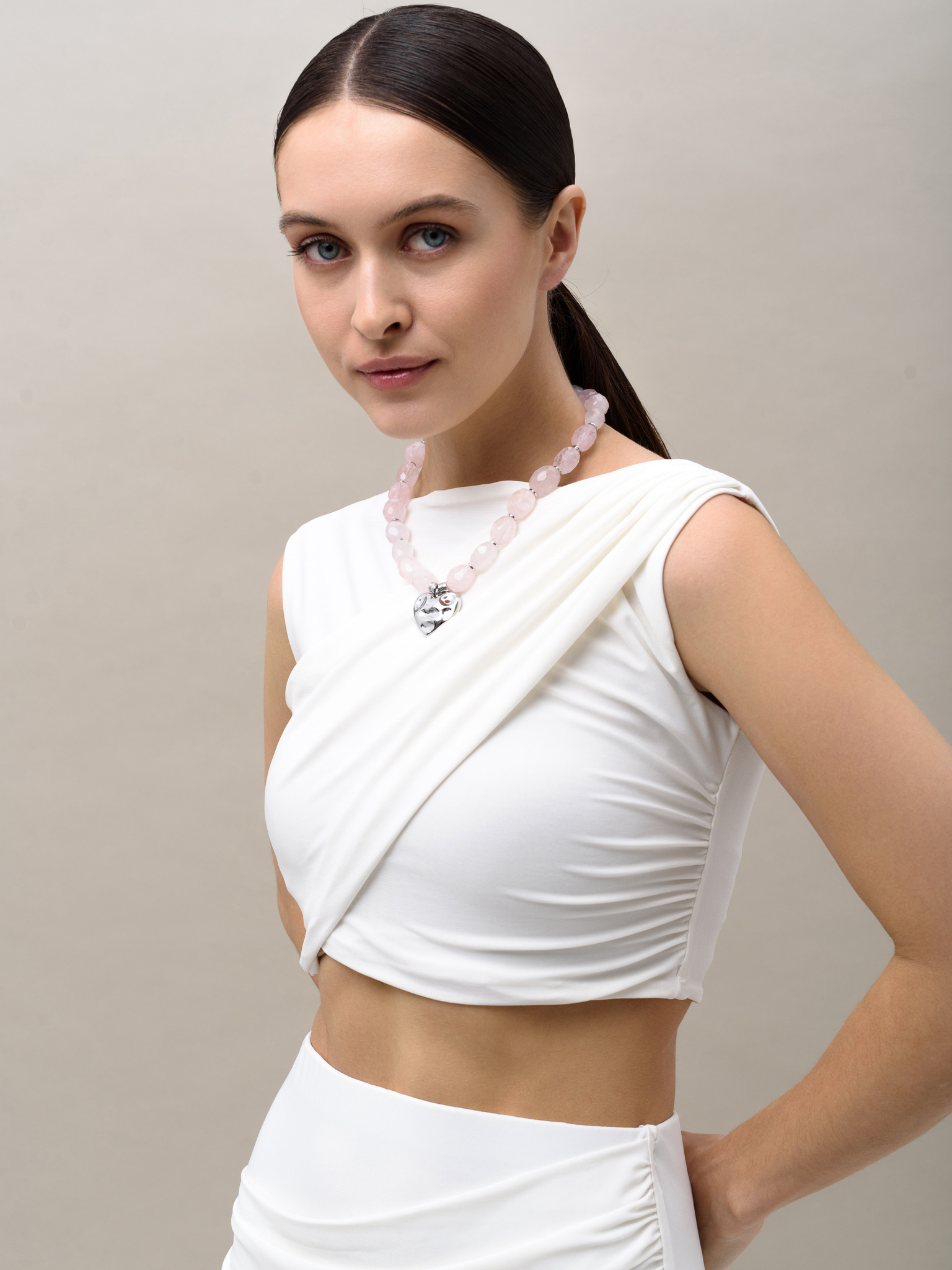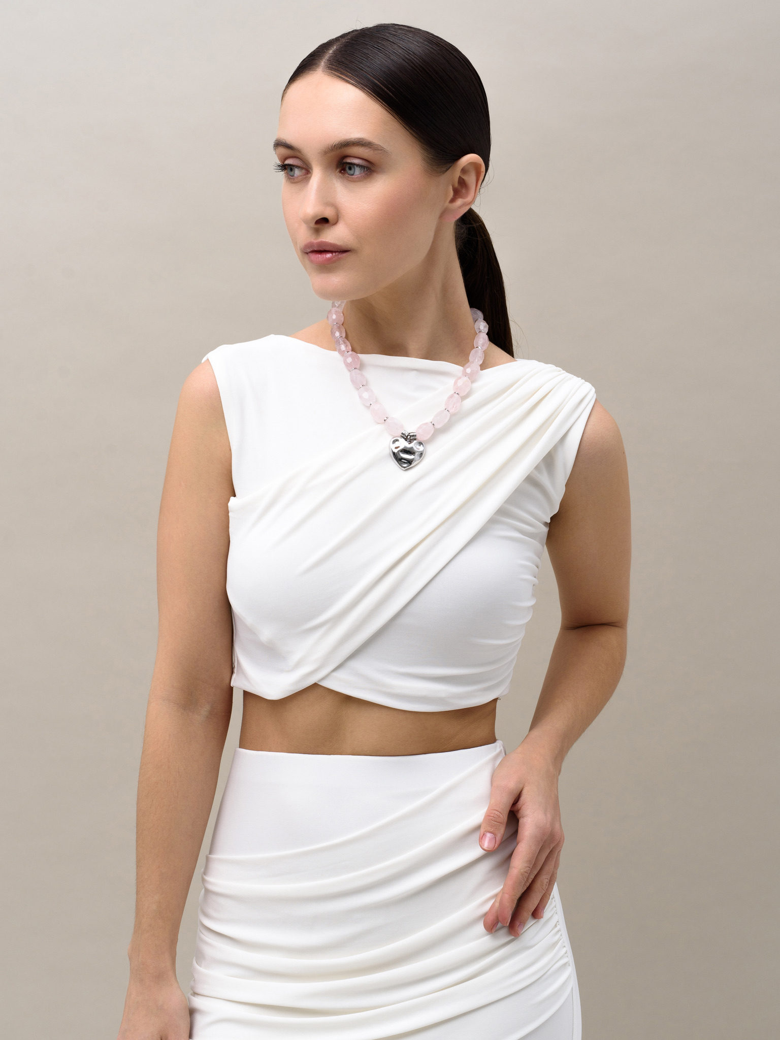 Колье "Crumpled Heart" Розовый кварц Silver