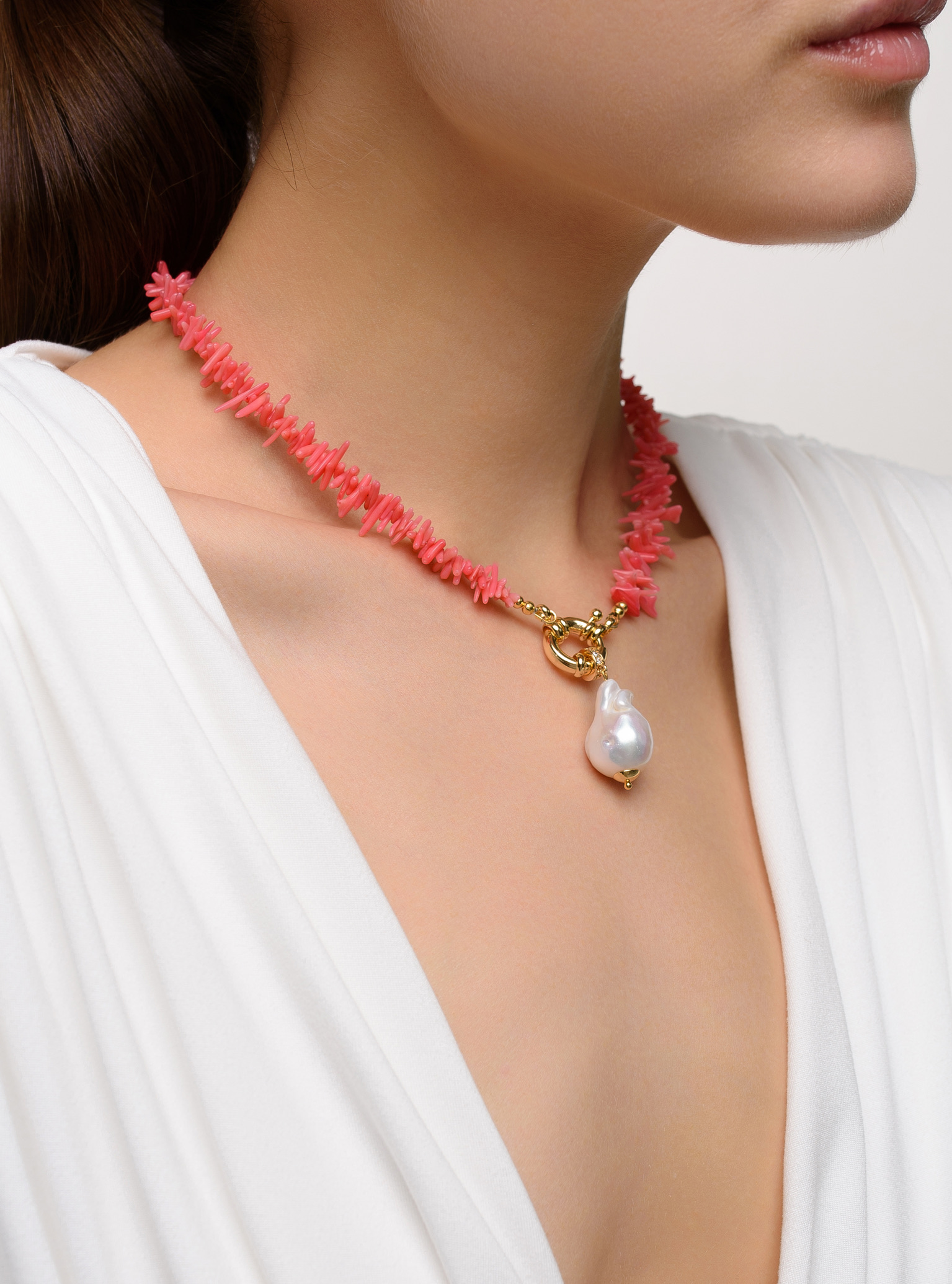 Колье Flamingo Coral Pearl Gold