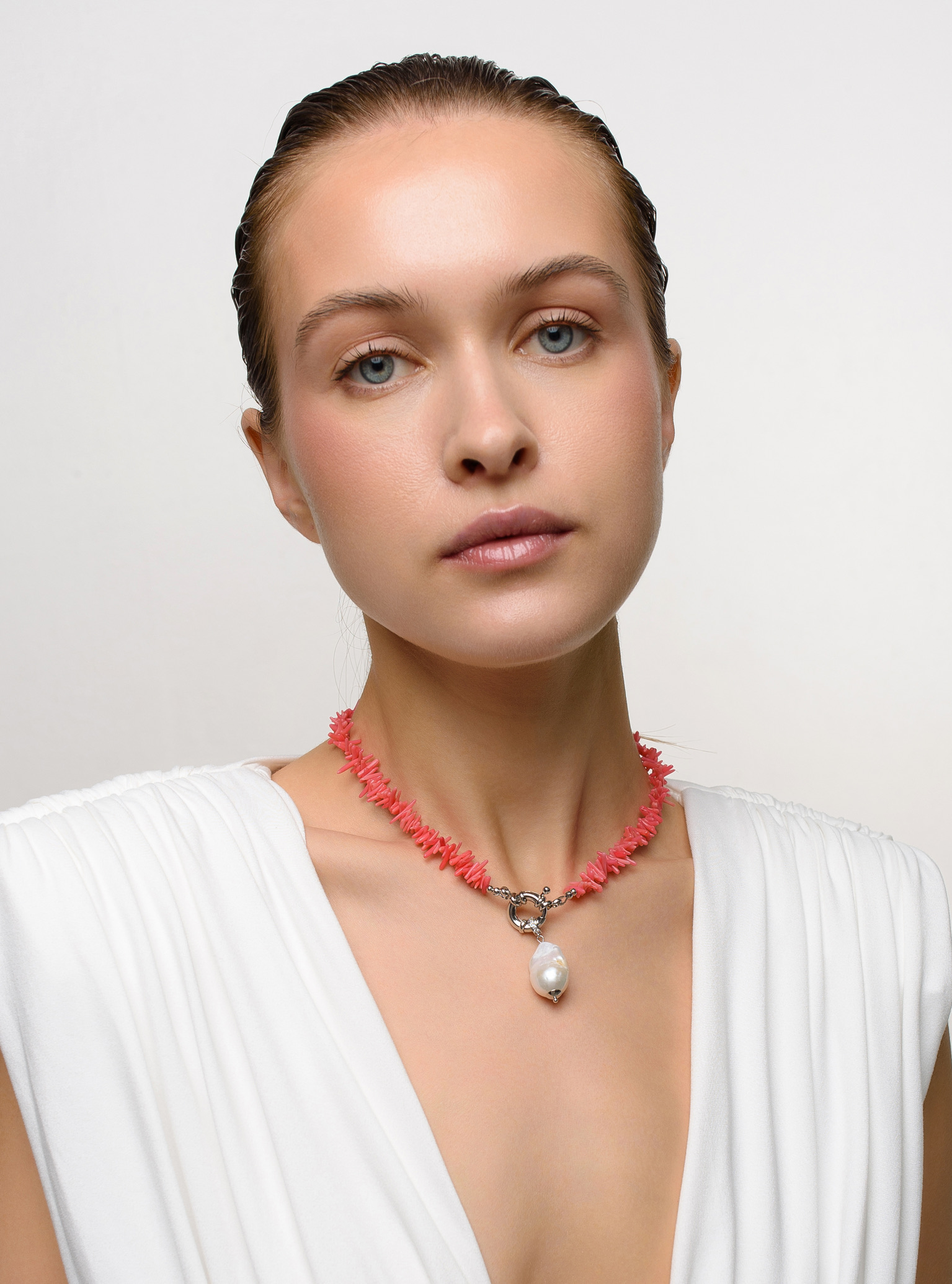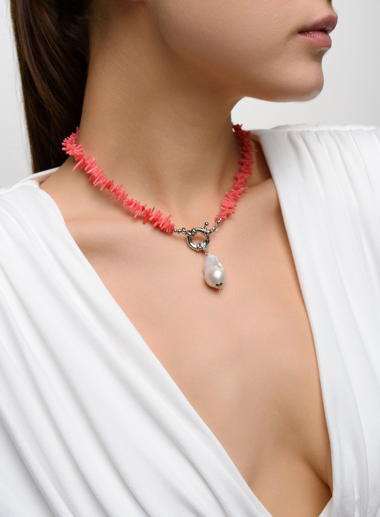 Колье Flamingo Coral Pearl Silver