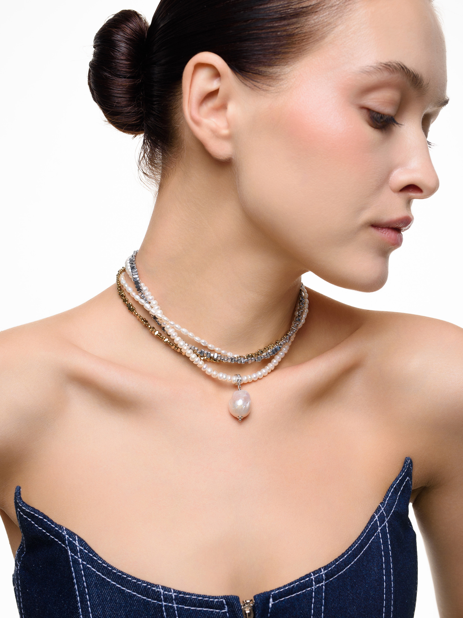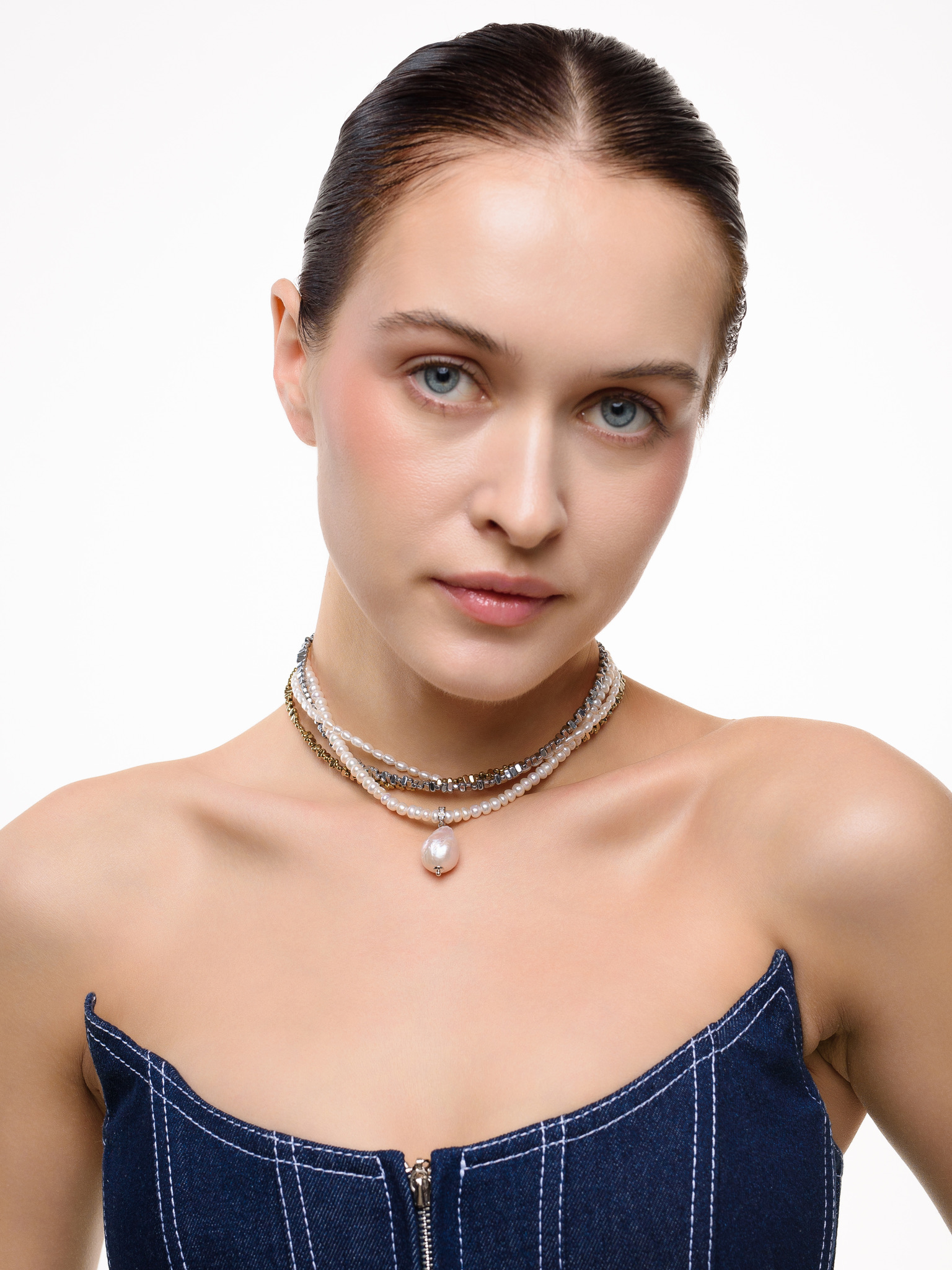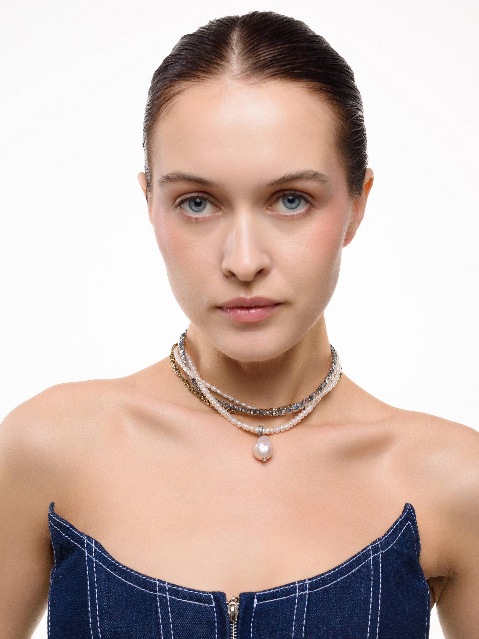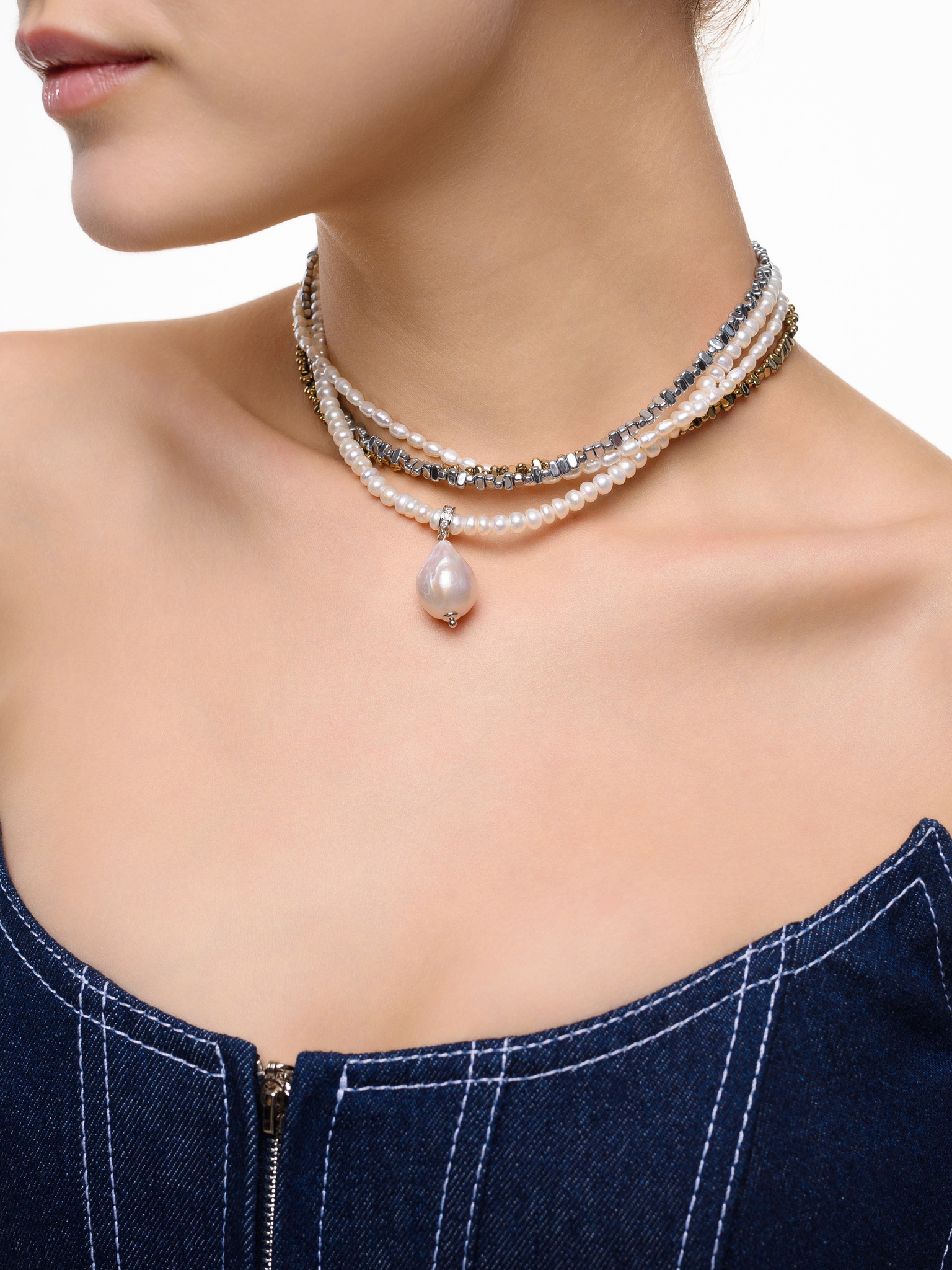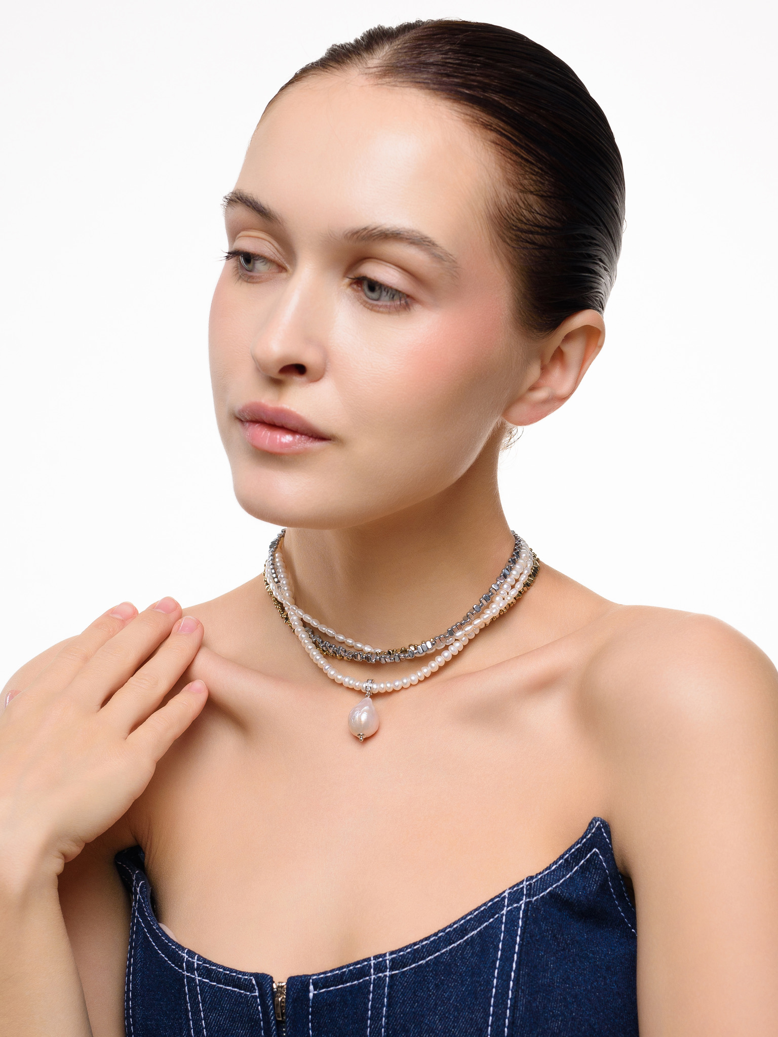 Колье "Holliday mini" из гематита и жемчуга