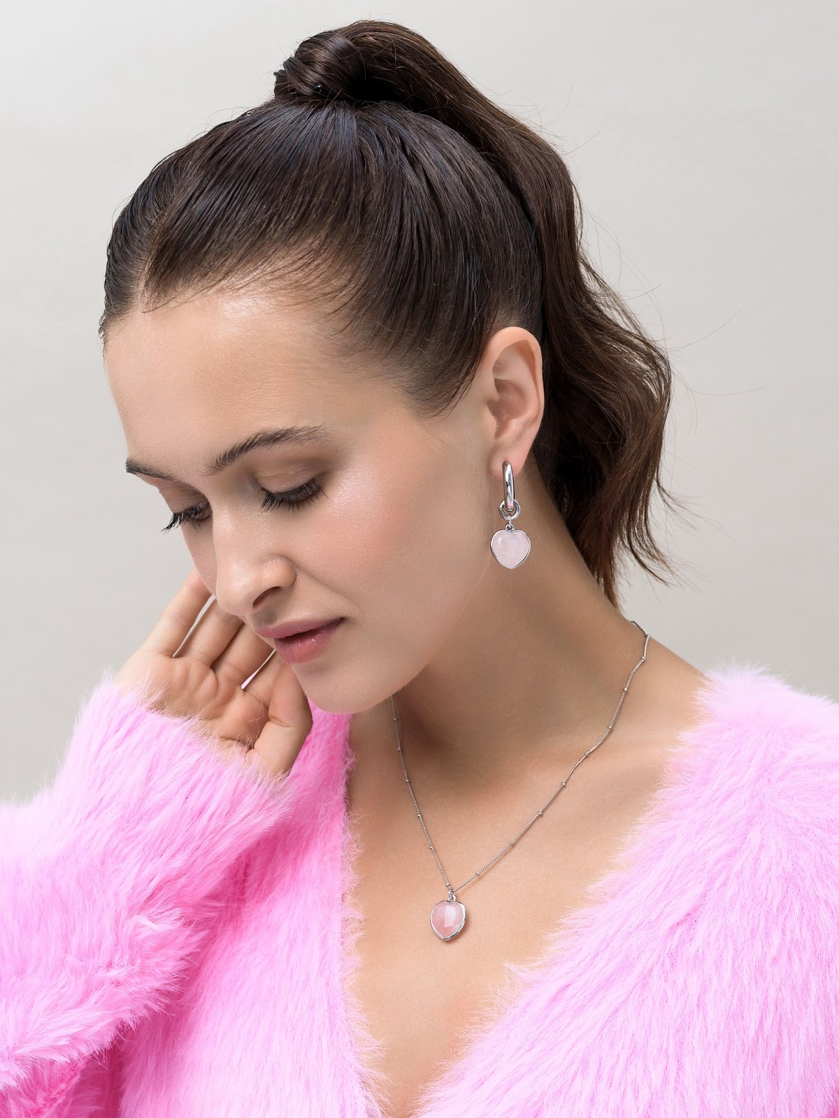 Колье "Lovely" с розовым кварцем Silver