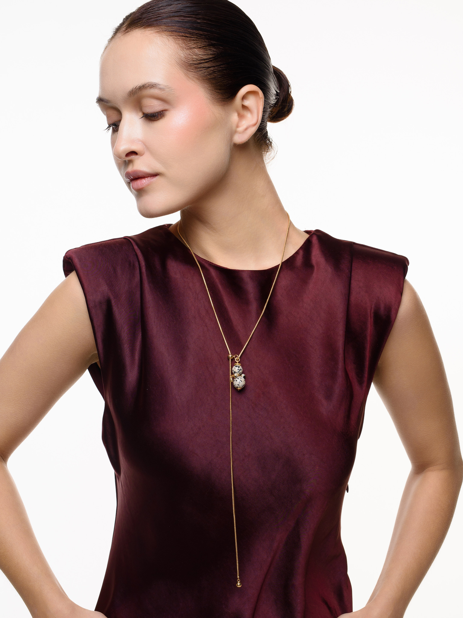 Колье "Nevalyashka" долматиновая яшма Gold