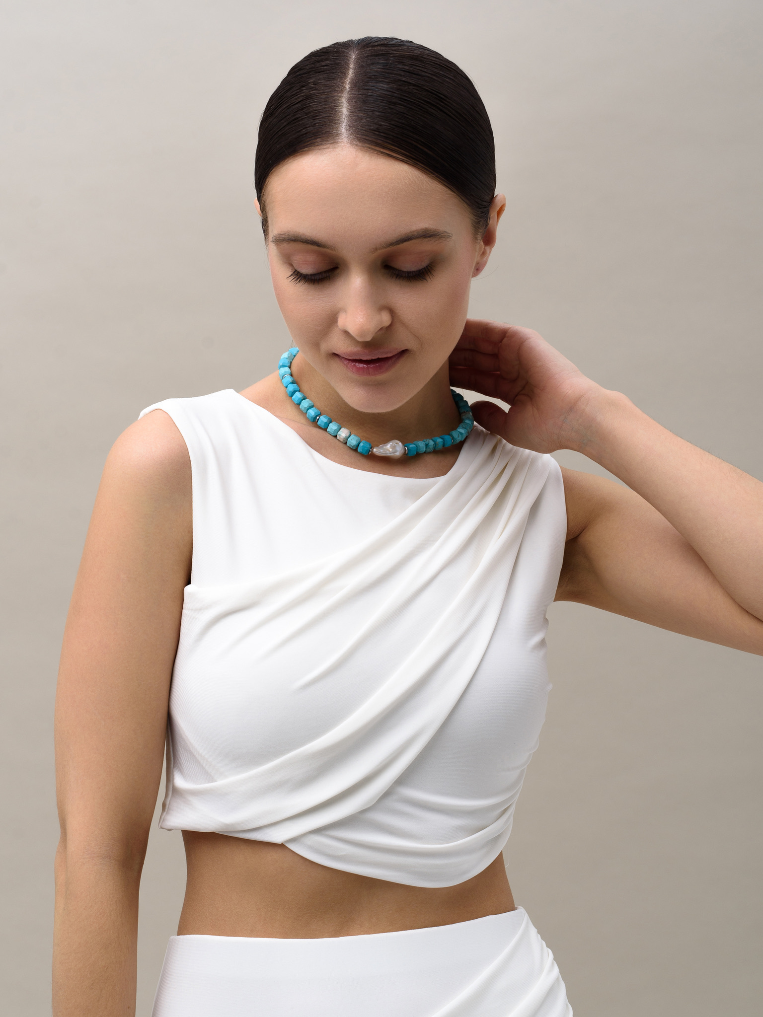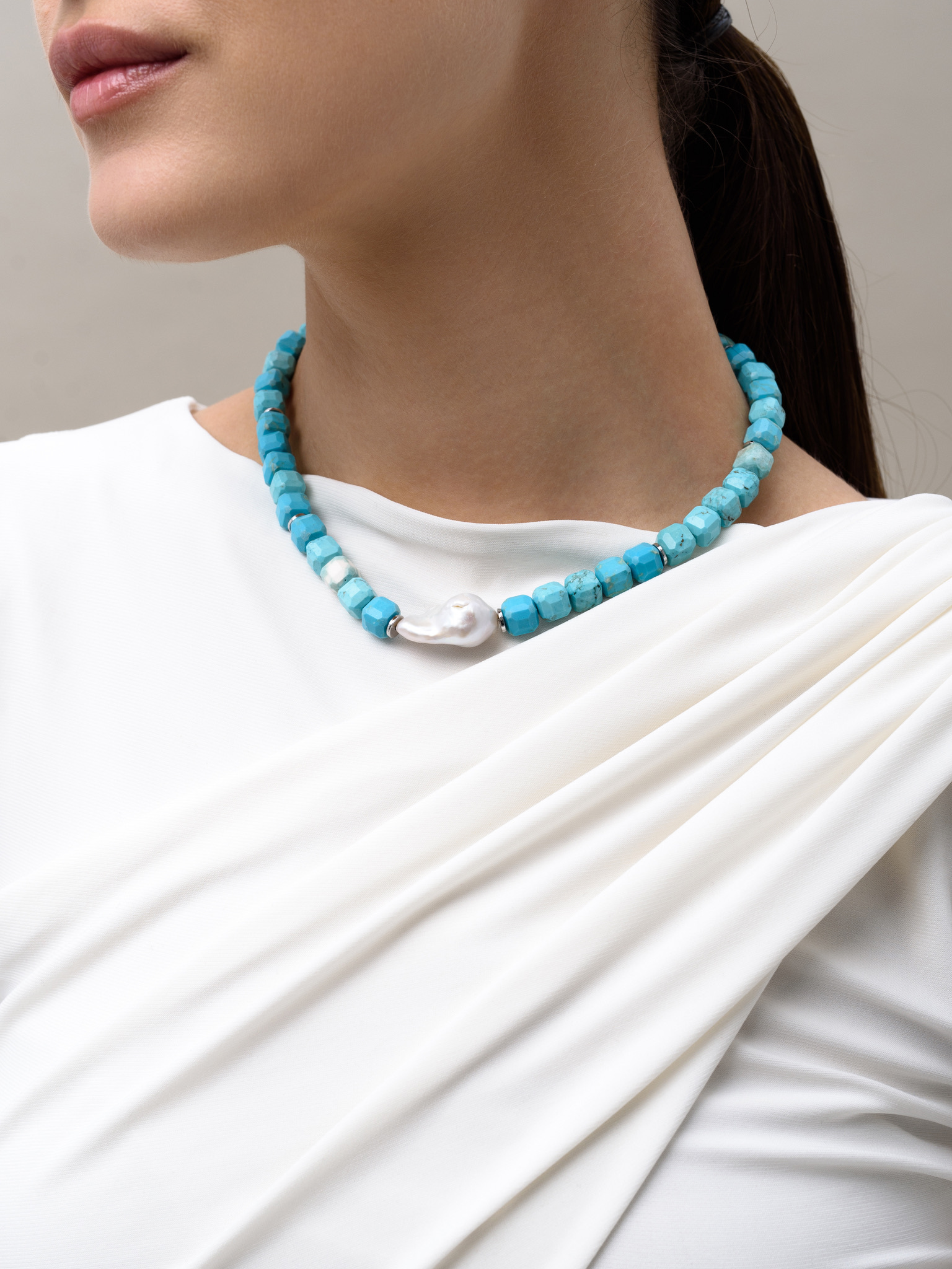 Колье "Pearl caramel blue" Silver
