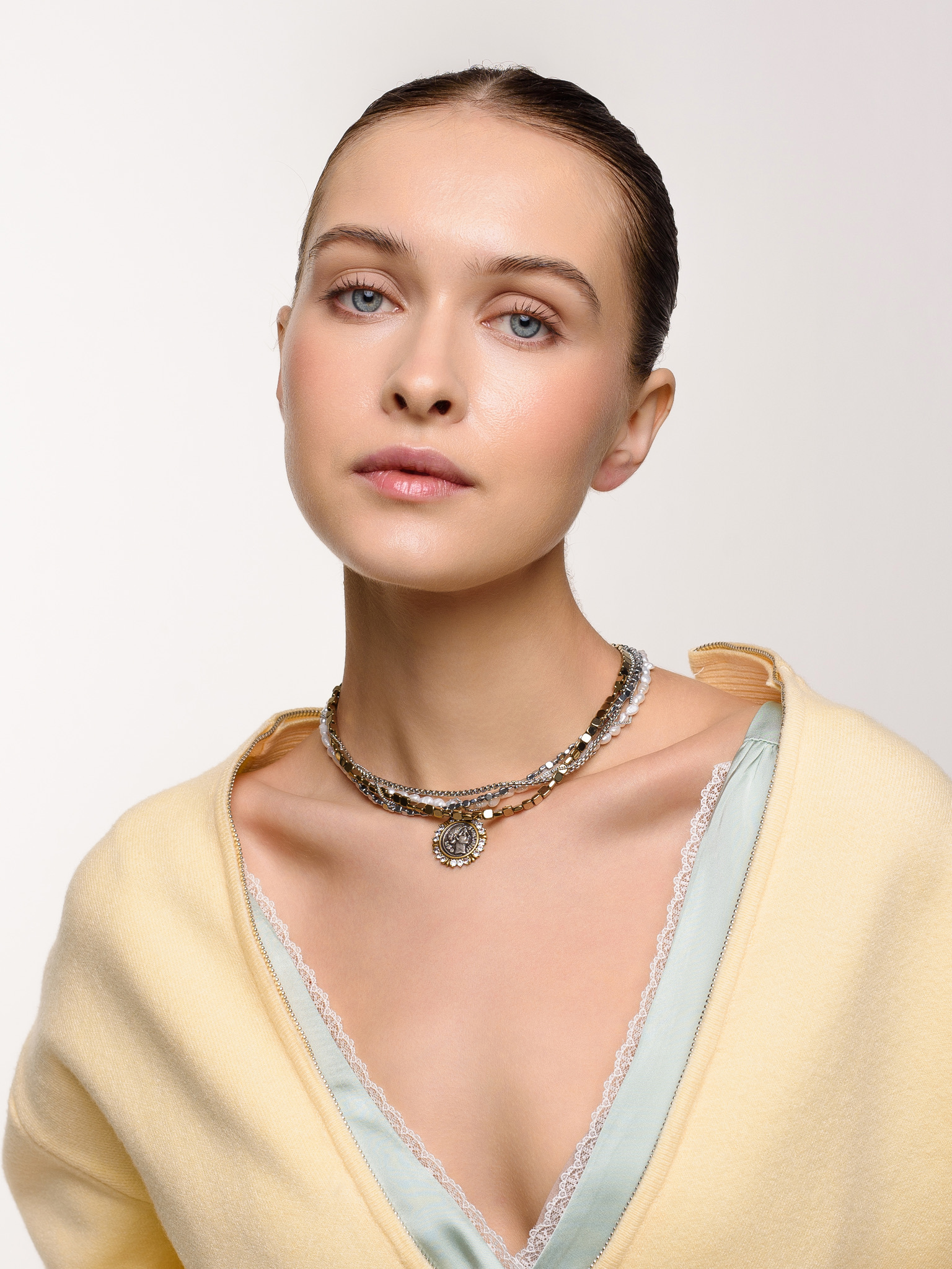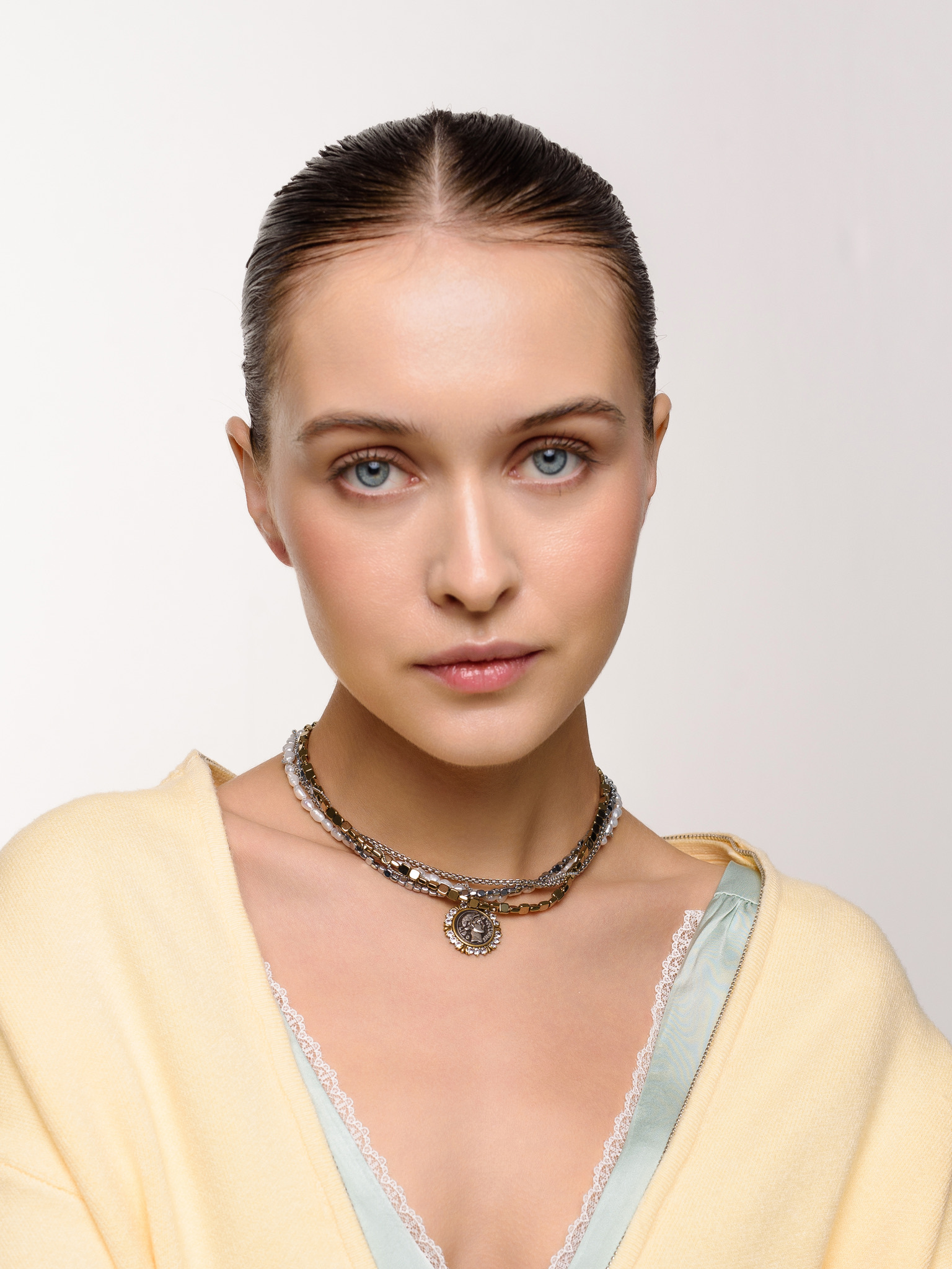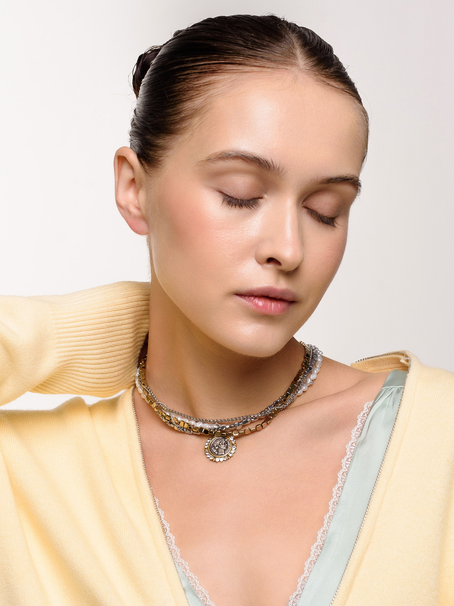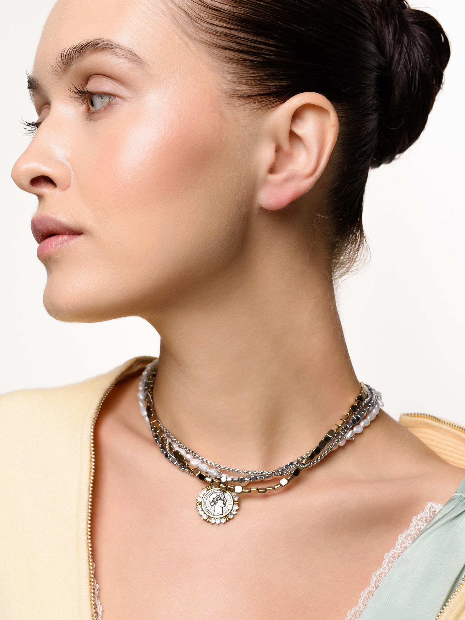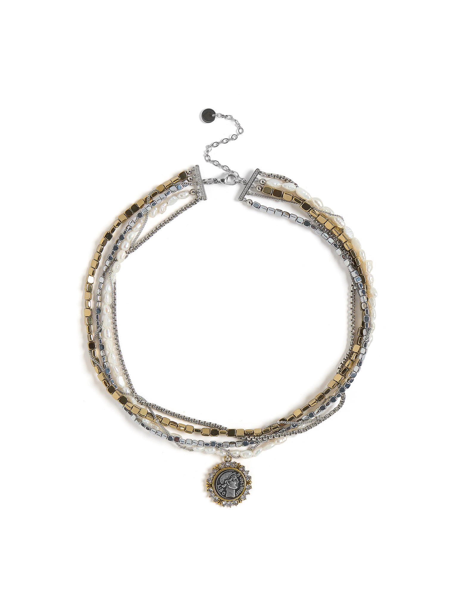 Колье "Pearl hematite coin bicolor"