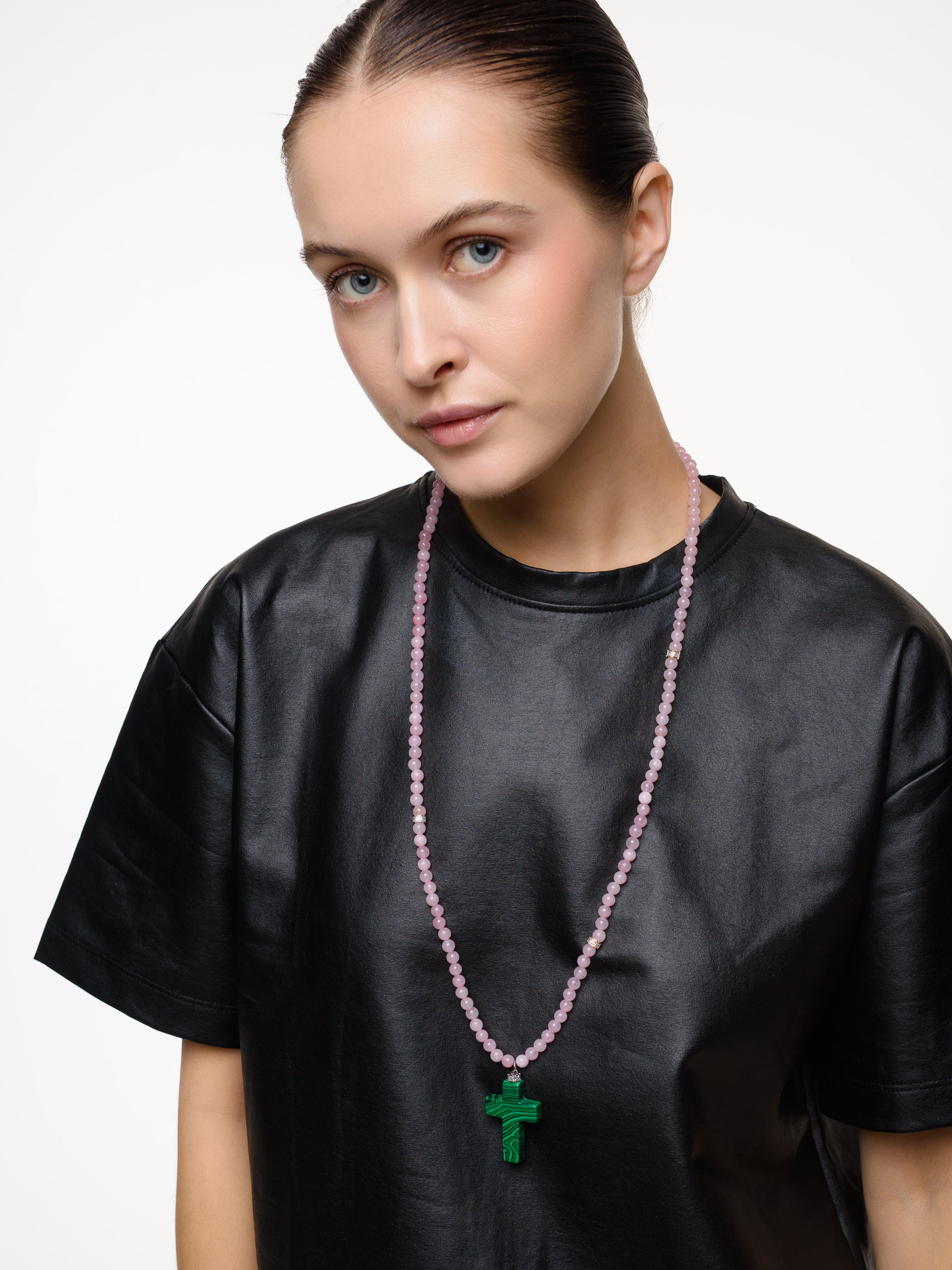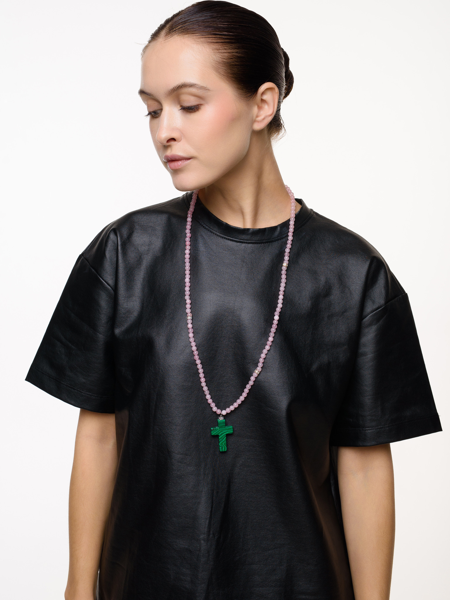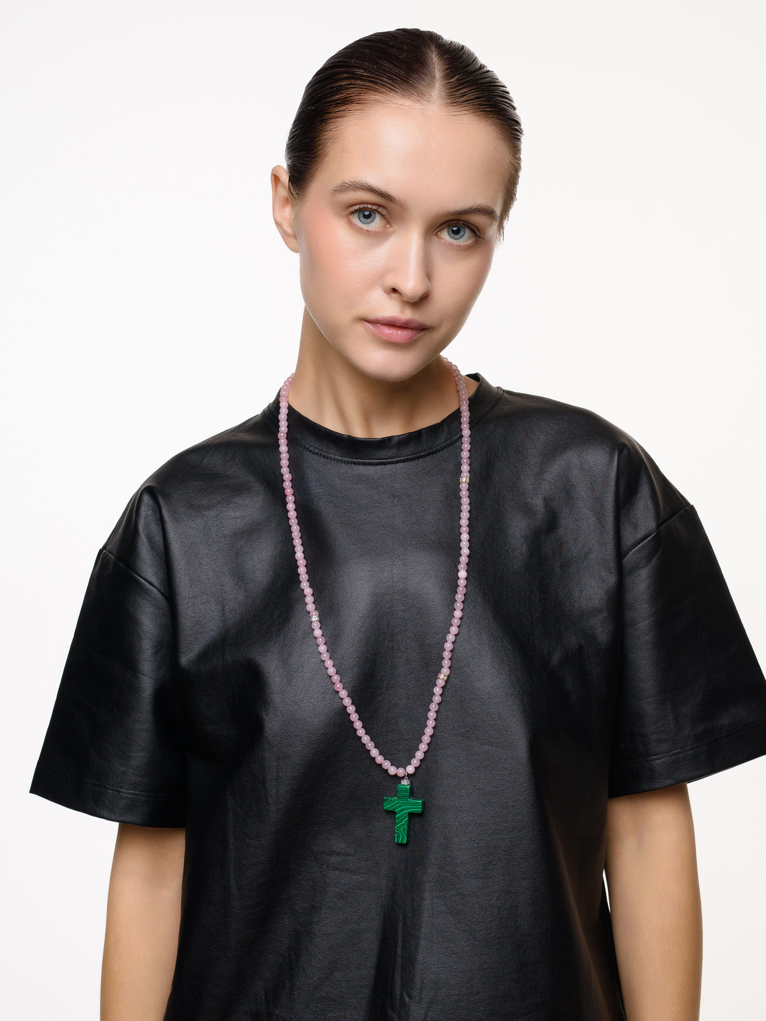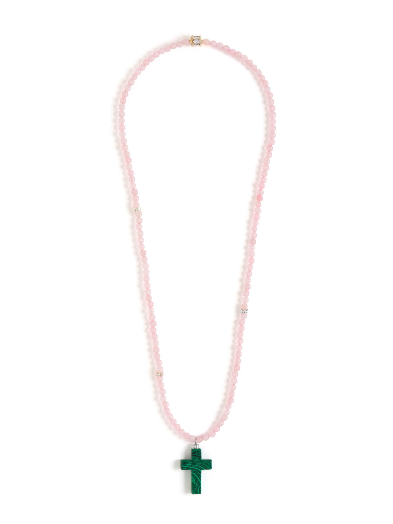 Колье "Stone Cross" из розового кварца c малахитом