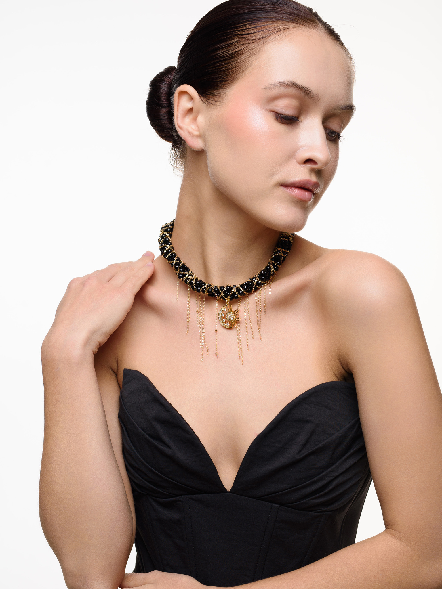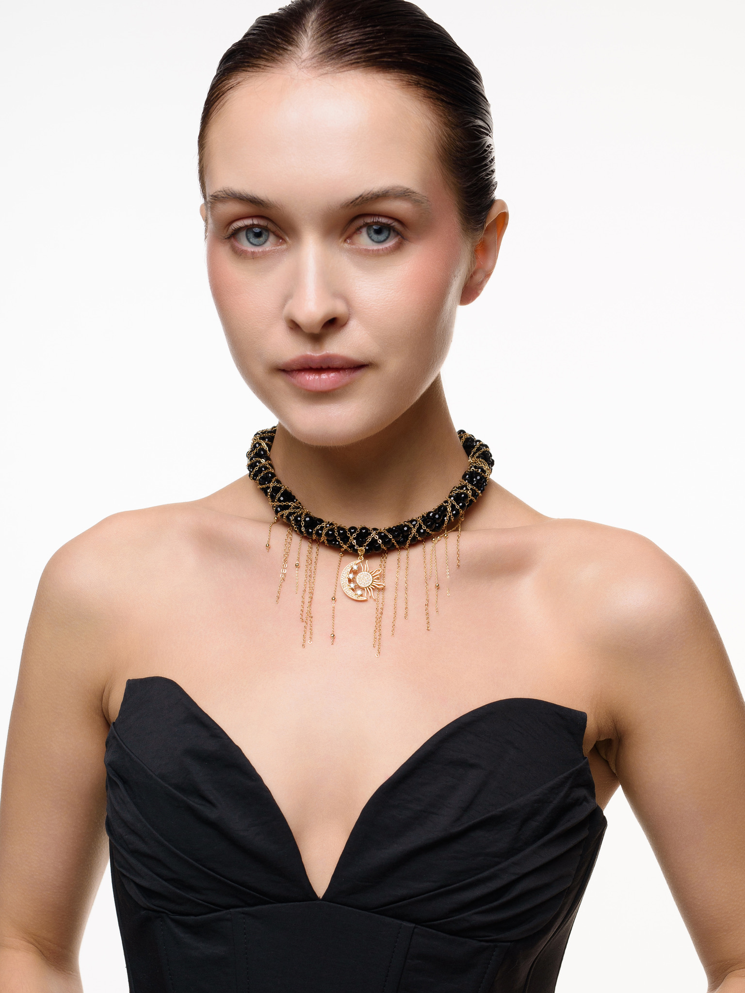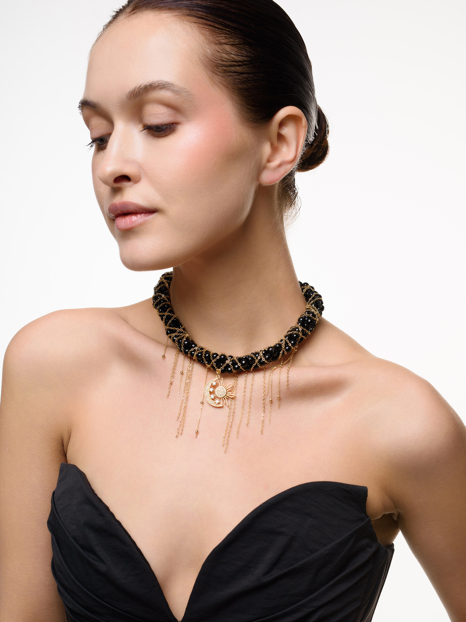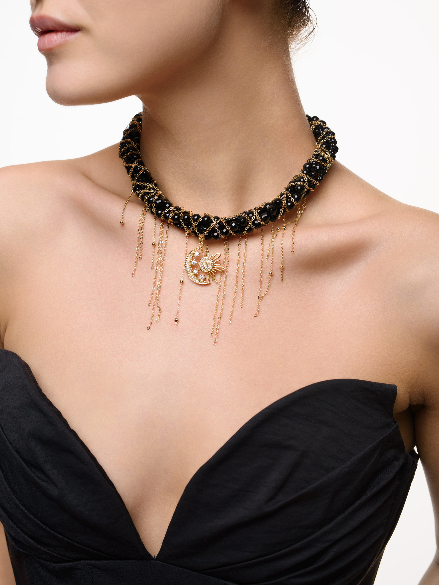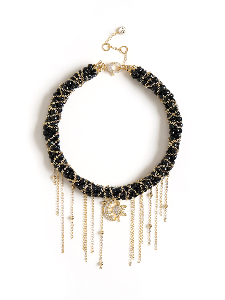 Колье "Sun And Moon" из черного агата Gold