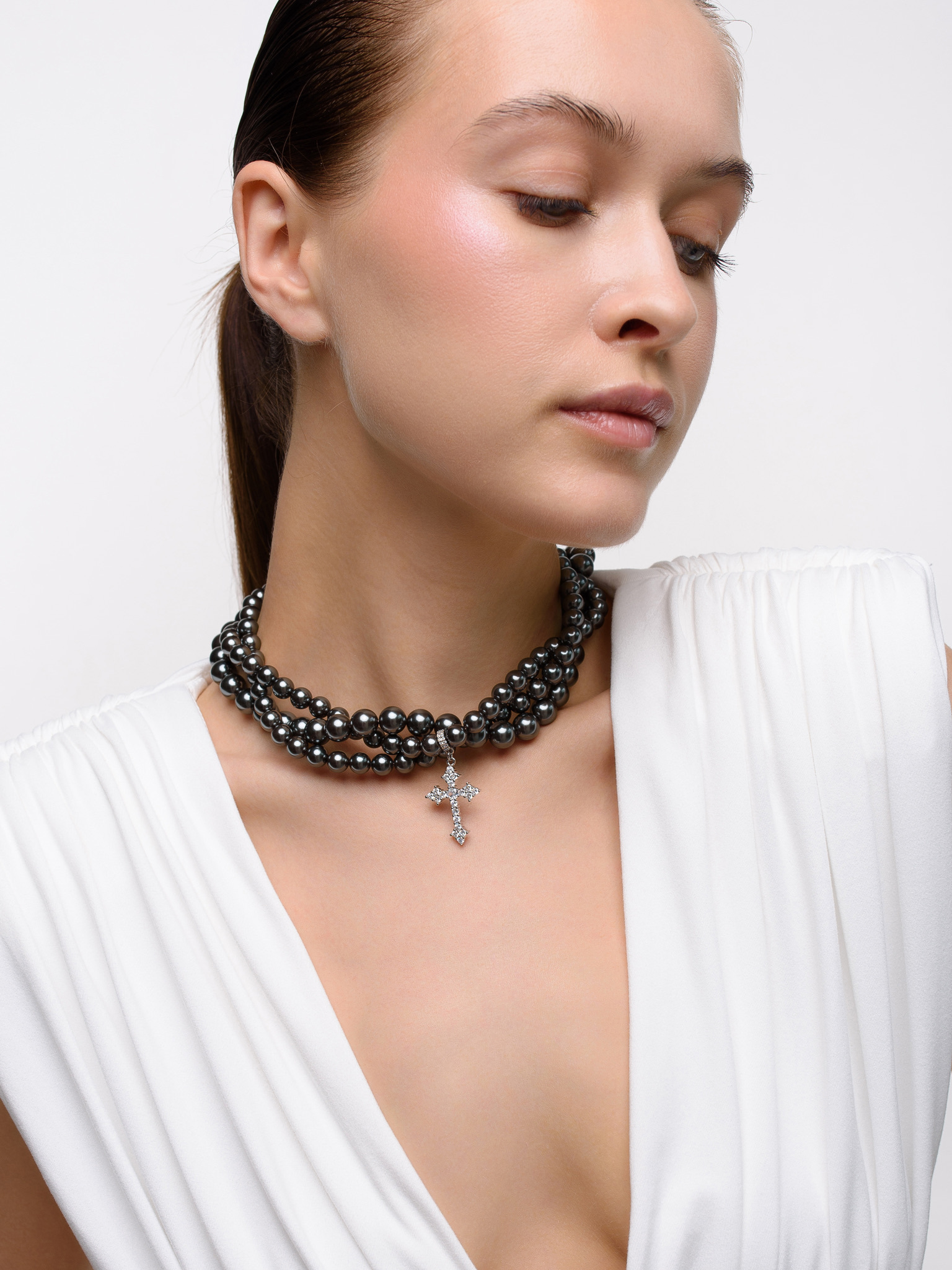 Колье "Trio cross gray" Silver