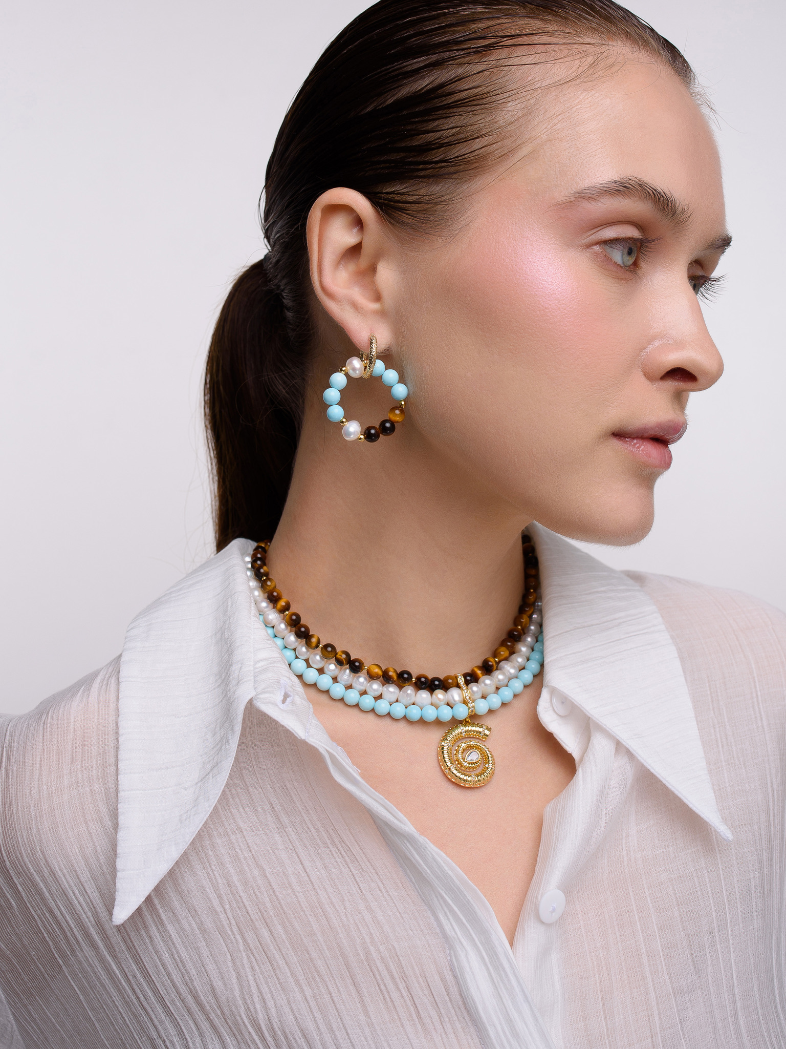 Колье "Trio tiger Shell " Gold