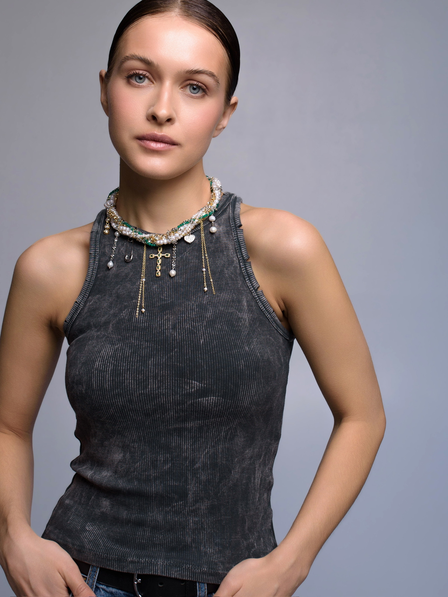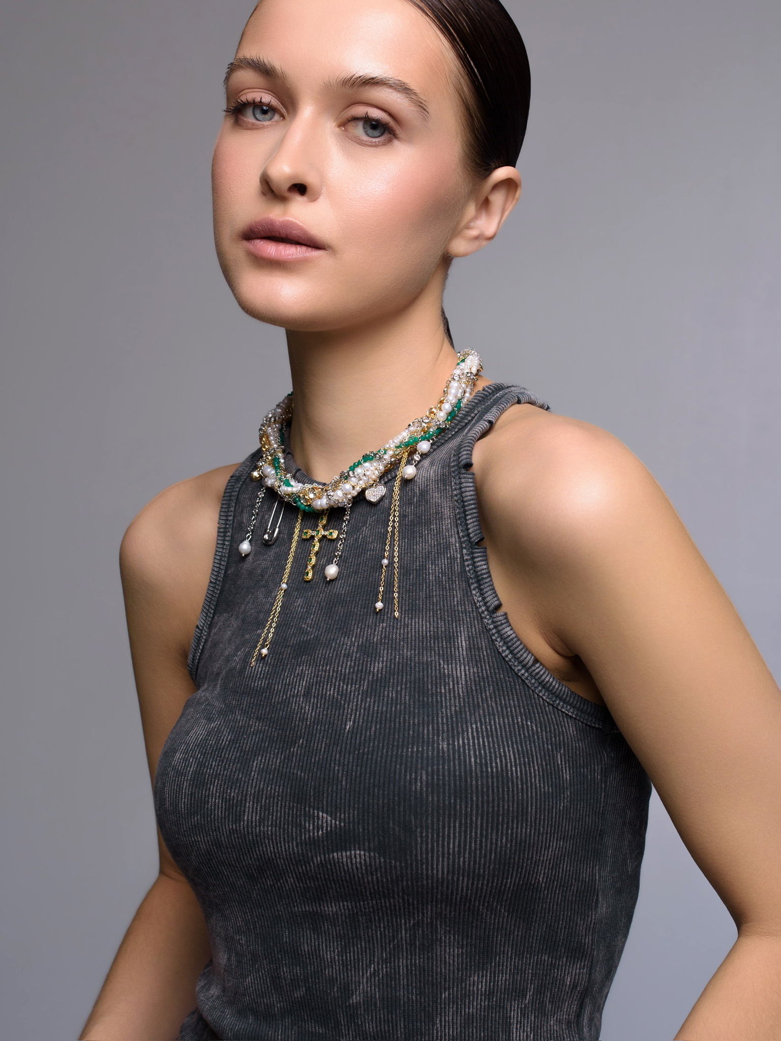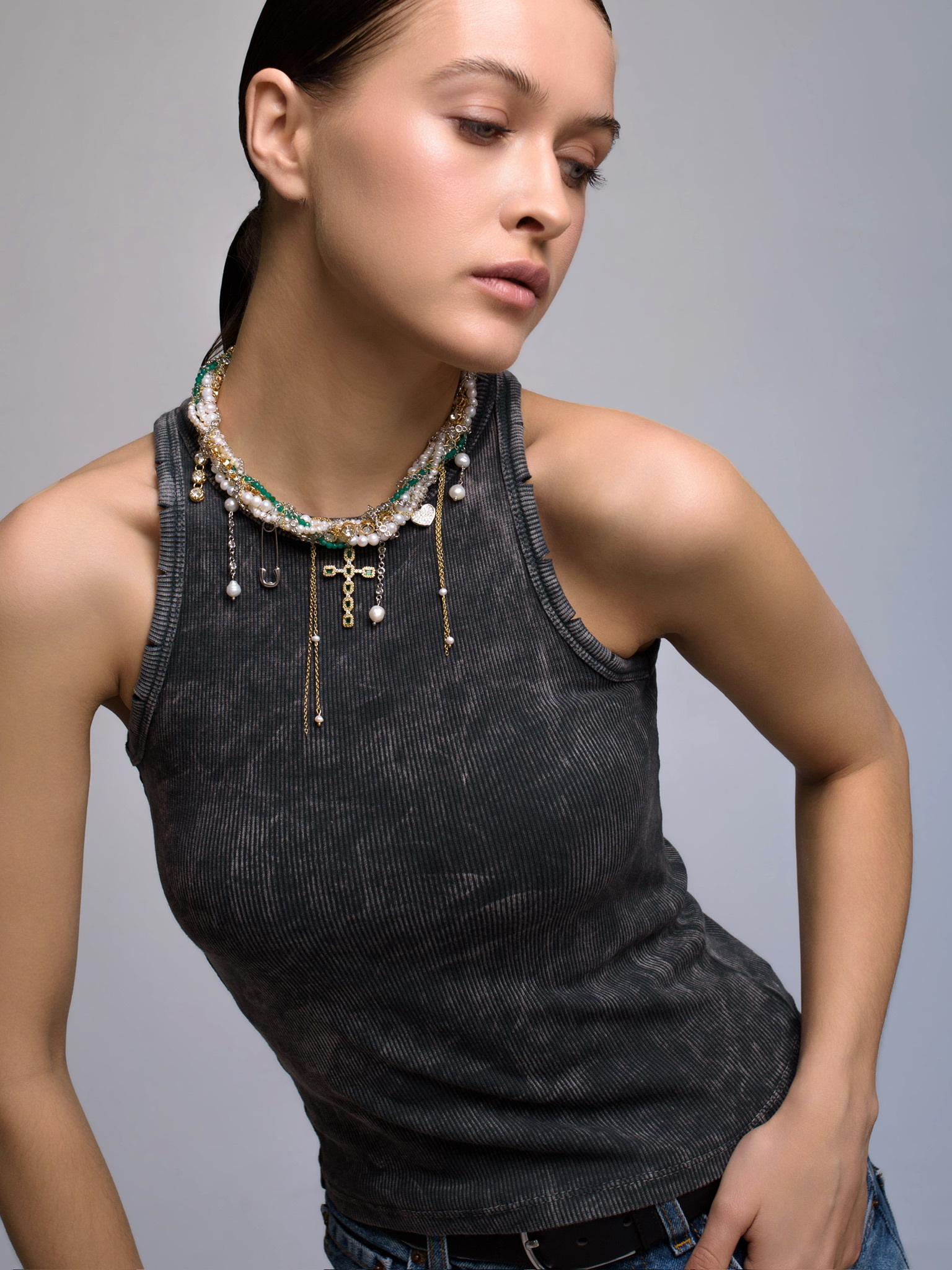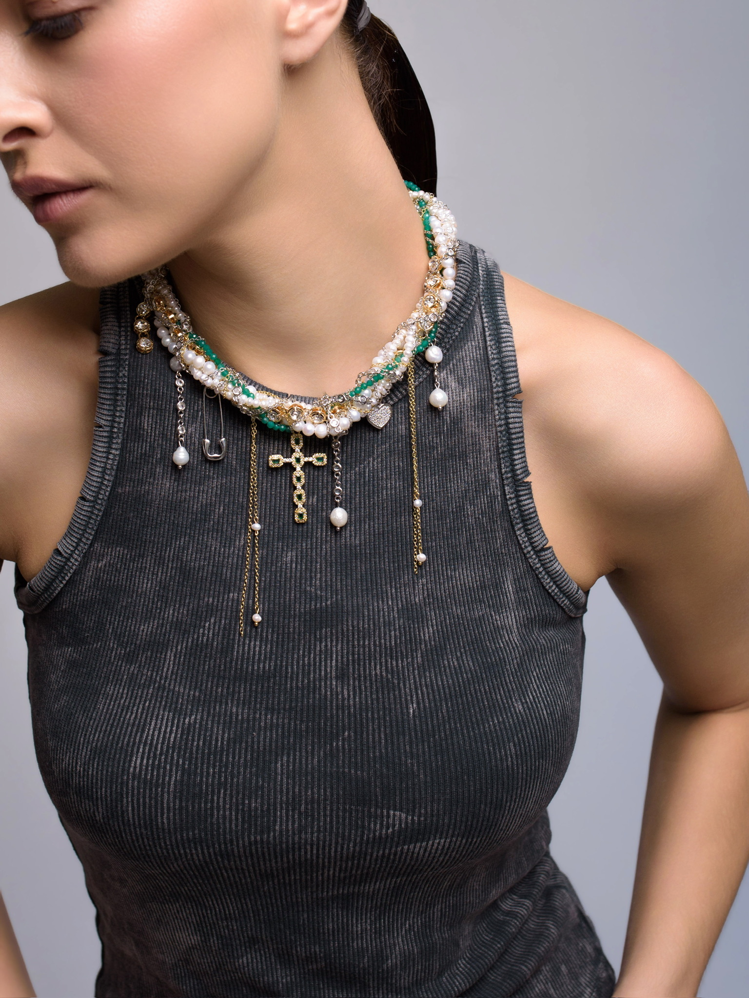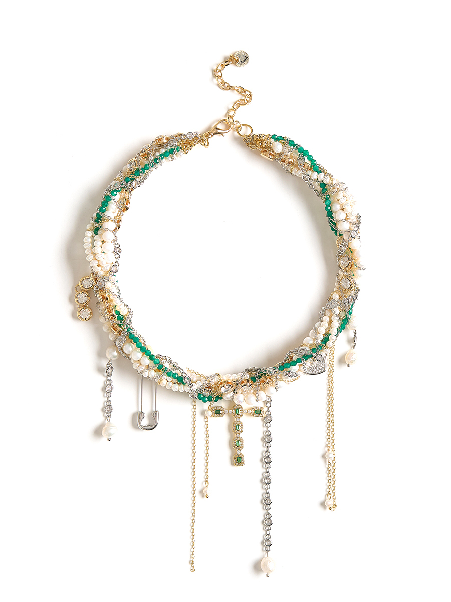 Колье "Winter Magic" из жемчуга и зеленого агата Gold