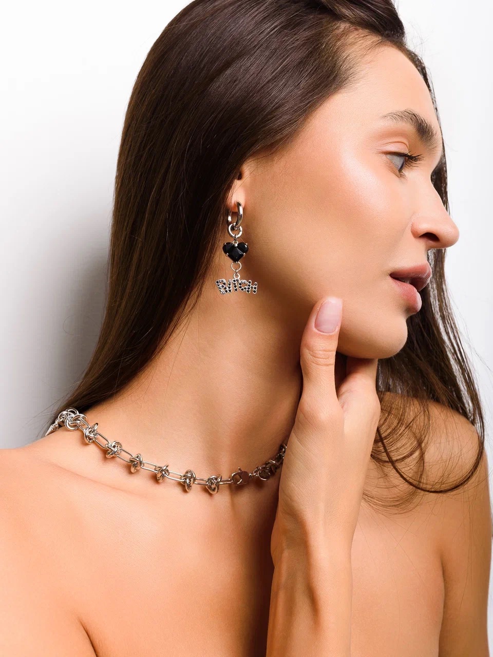 Моносерьга "Black soul bitch" Silver