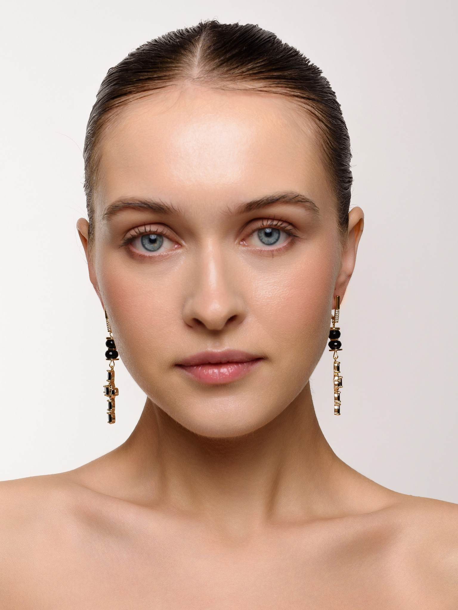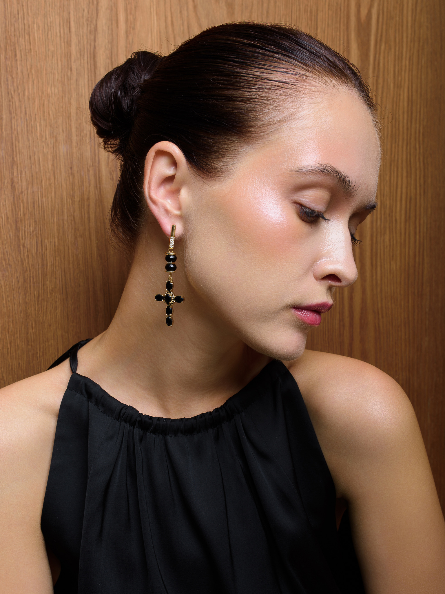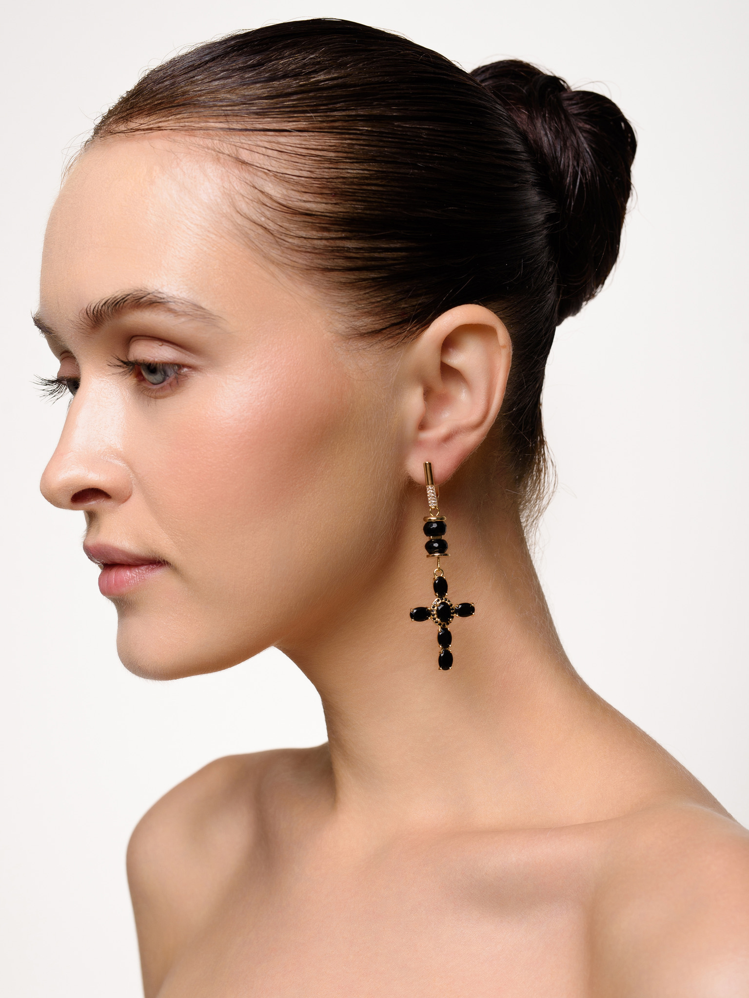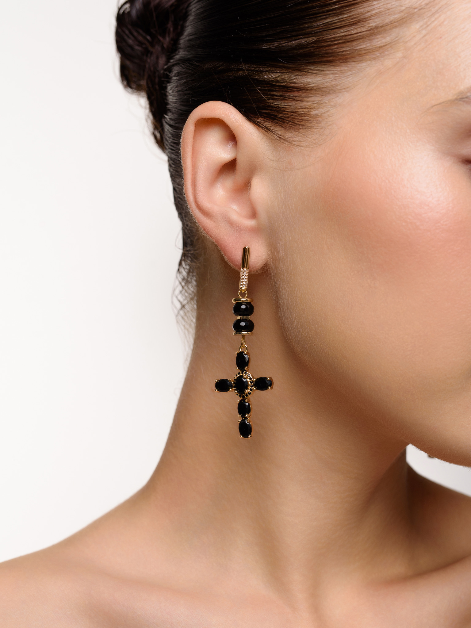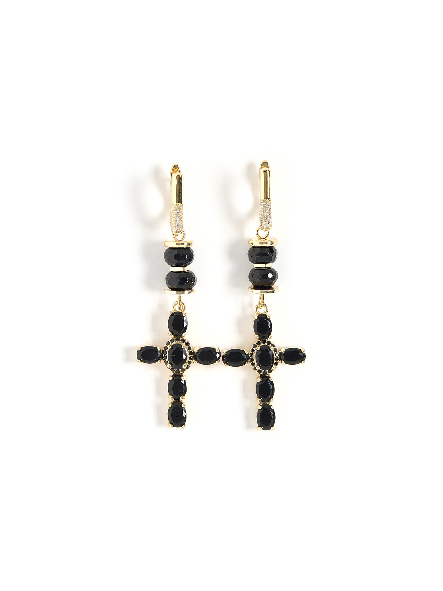 Серьги "Black Cross" из черного агата Gold