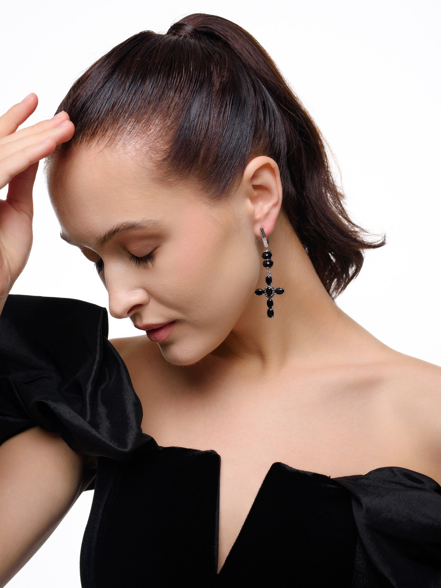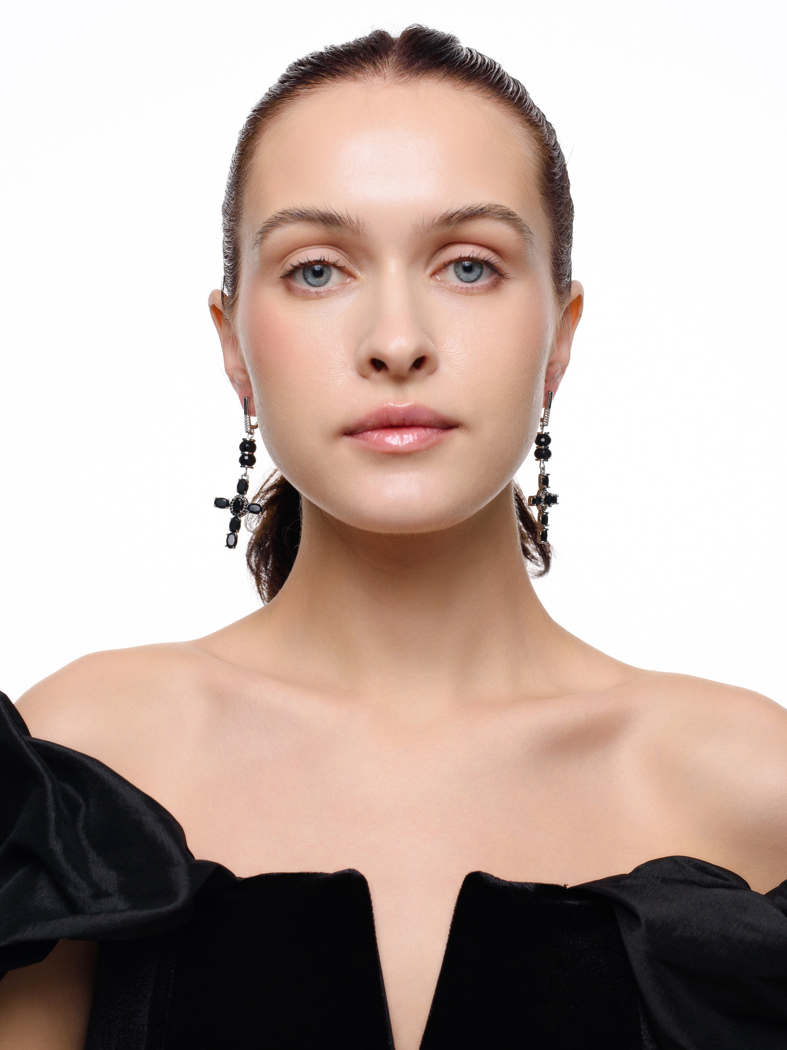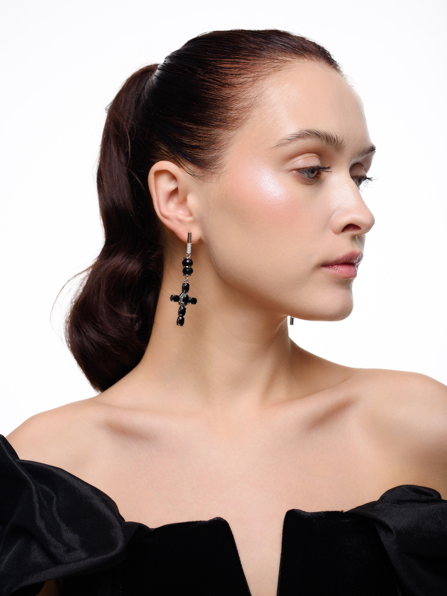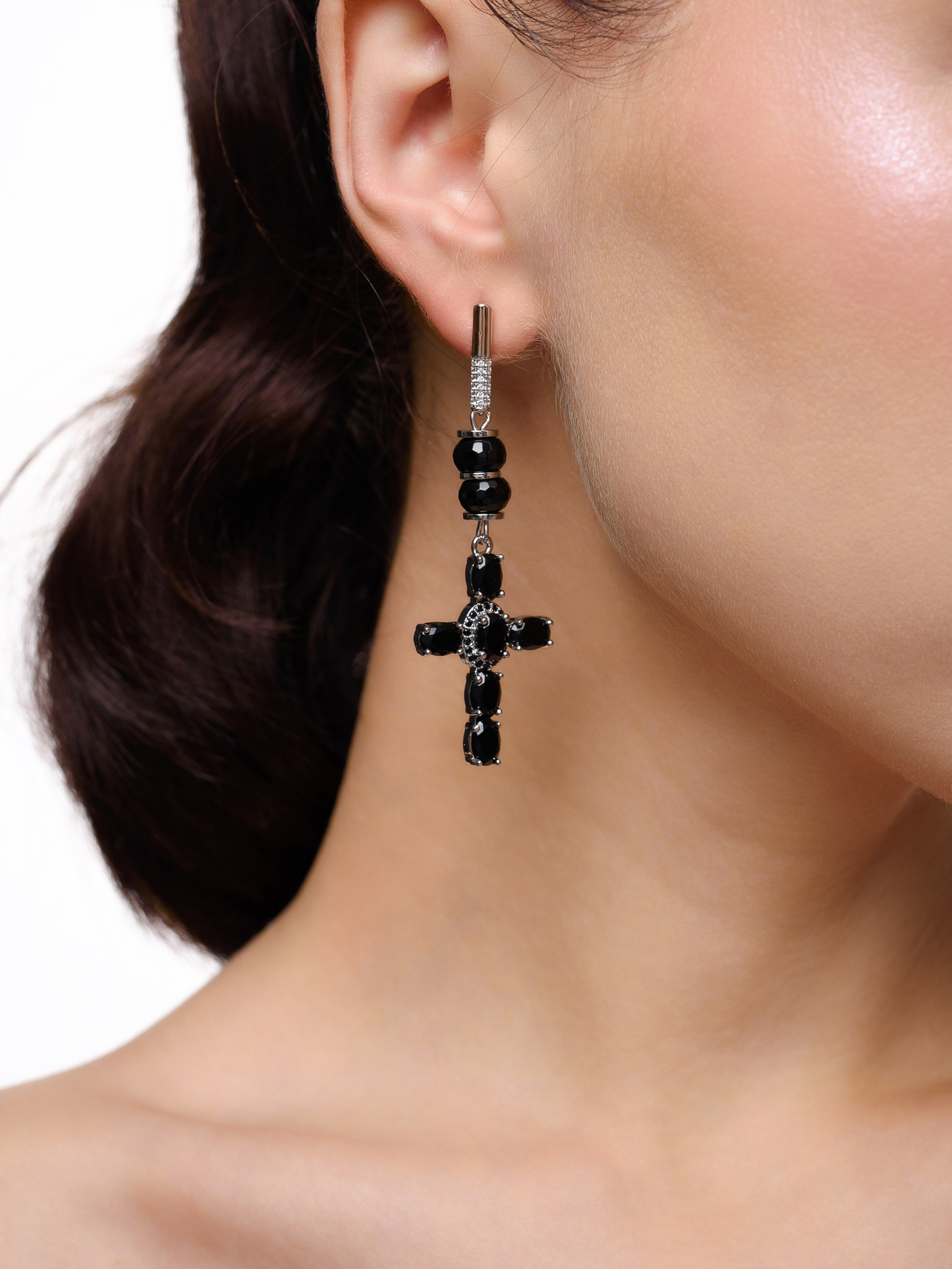 Серьги "Black Cross" из черного агата Silver