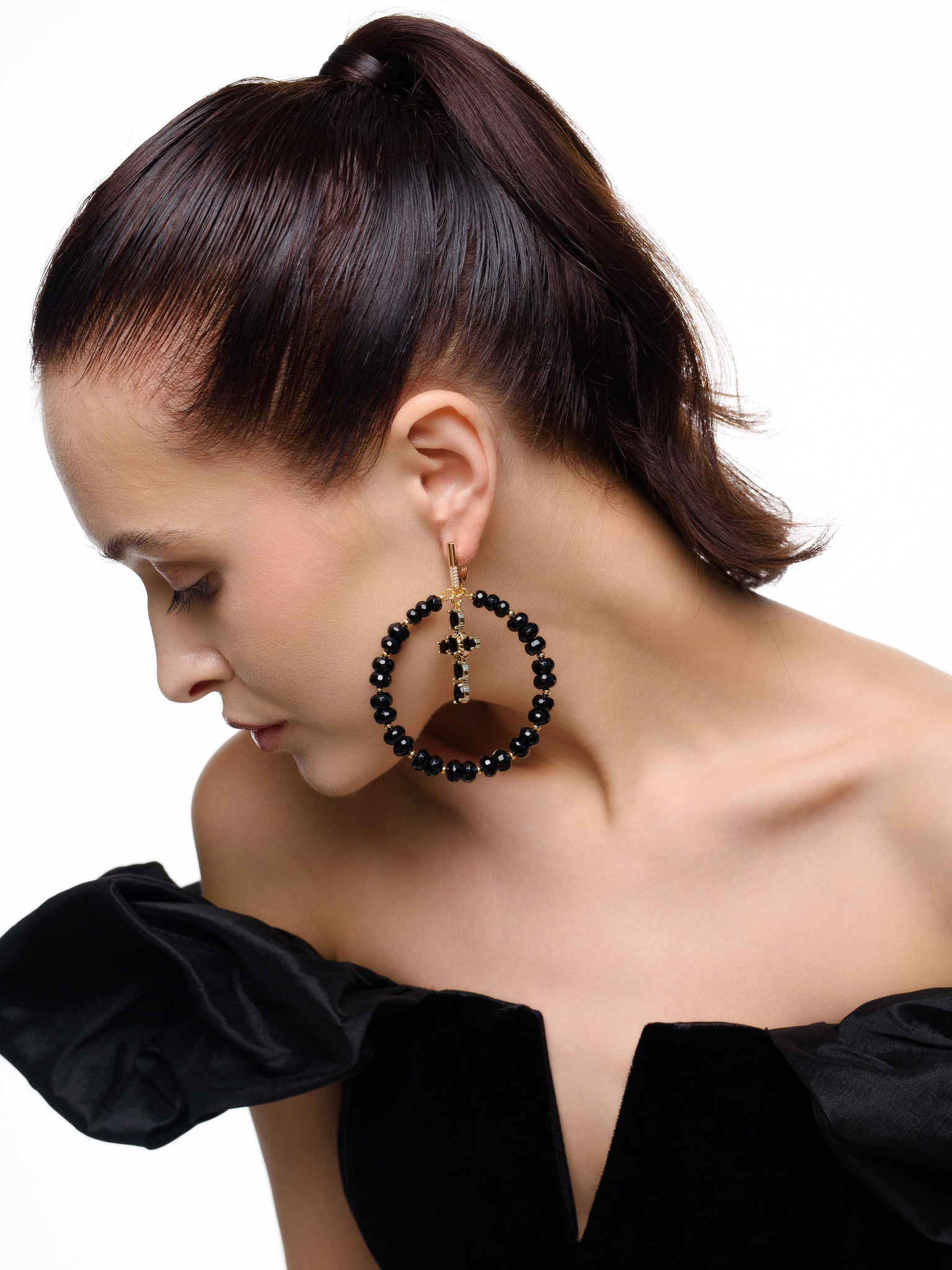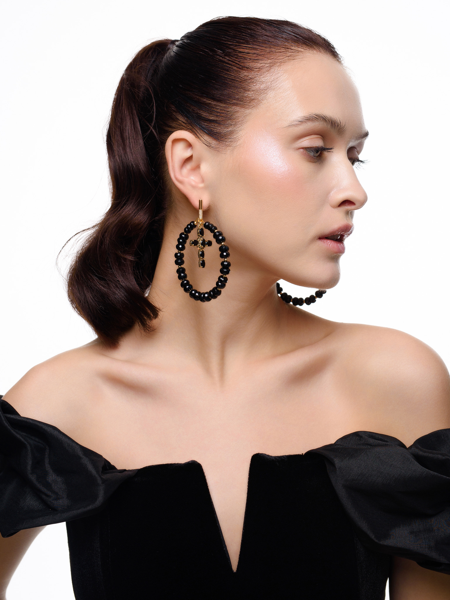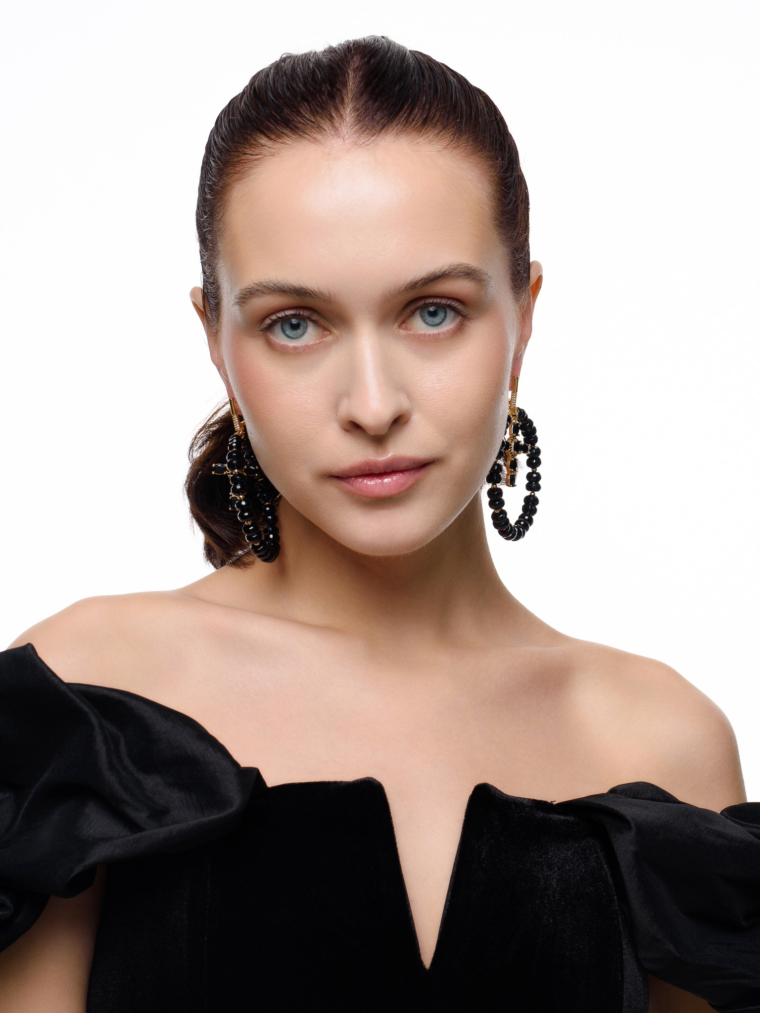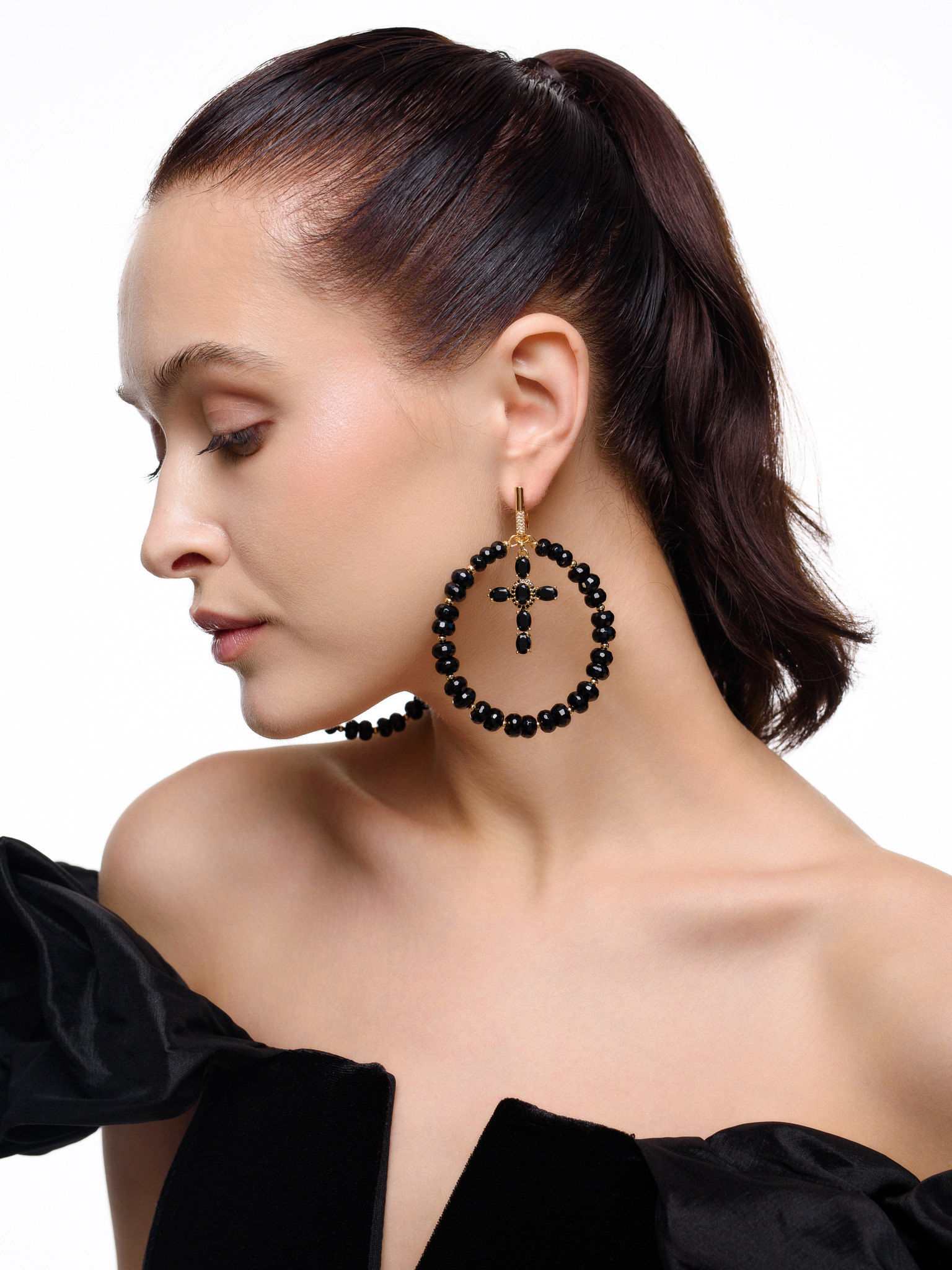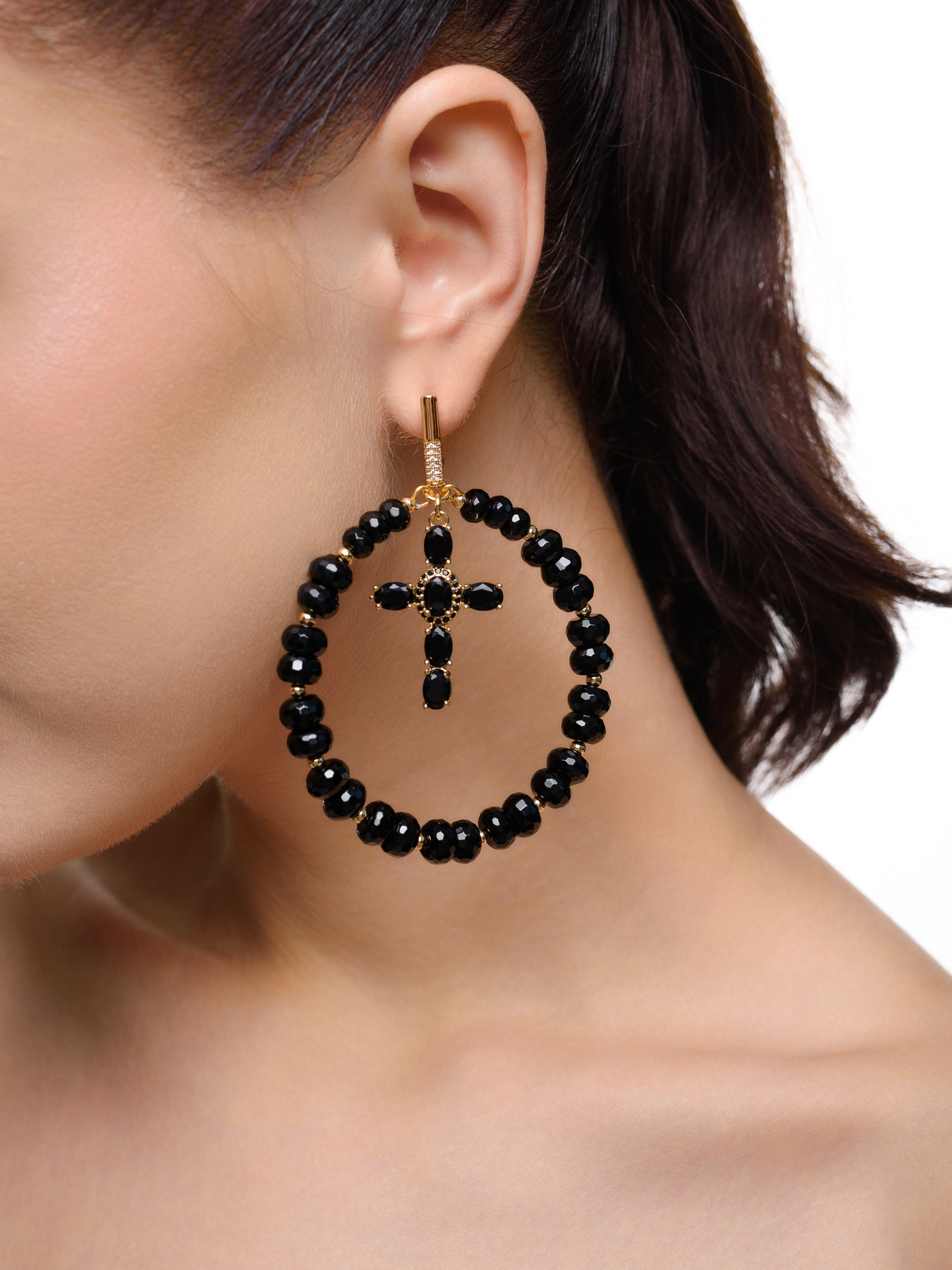 Серьги "Black night" из черного агата Gold