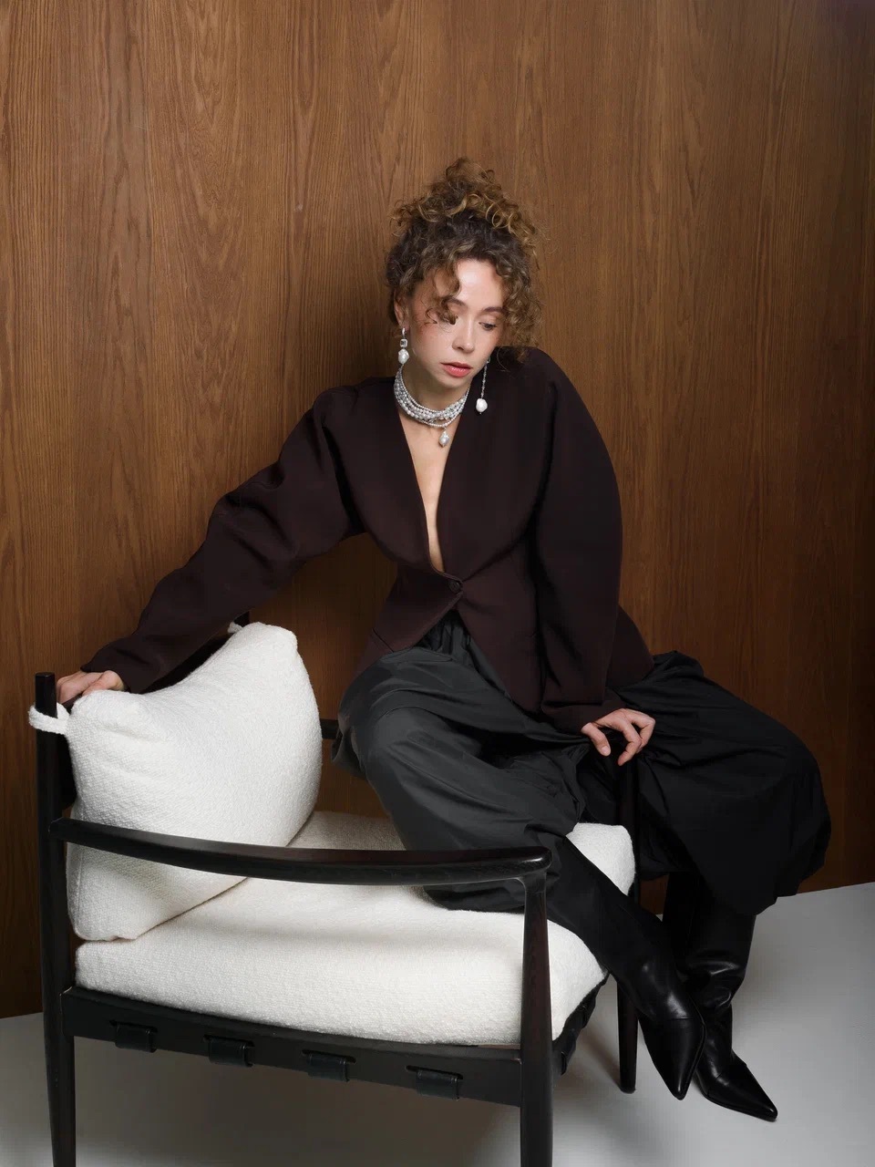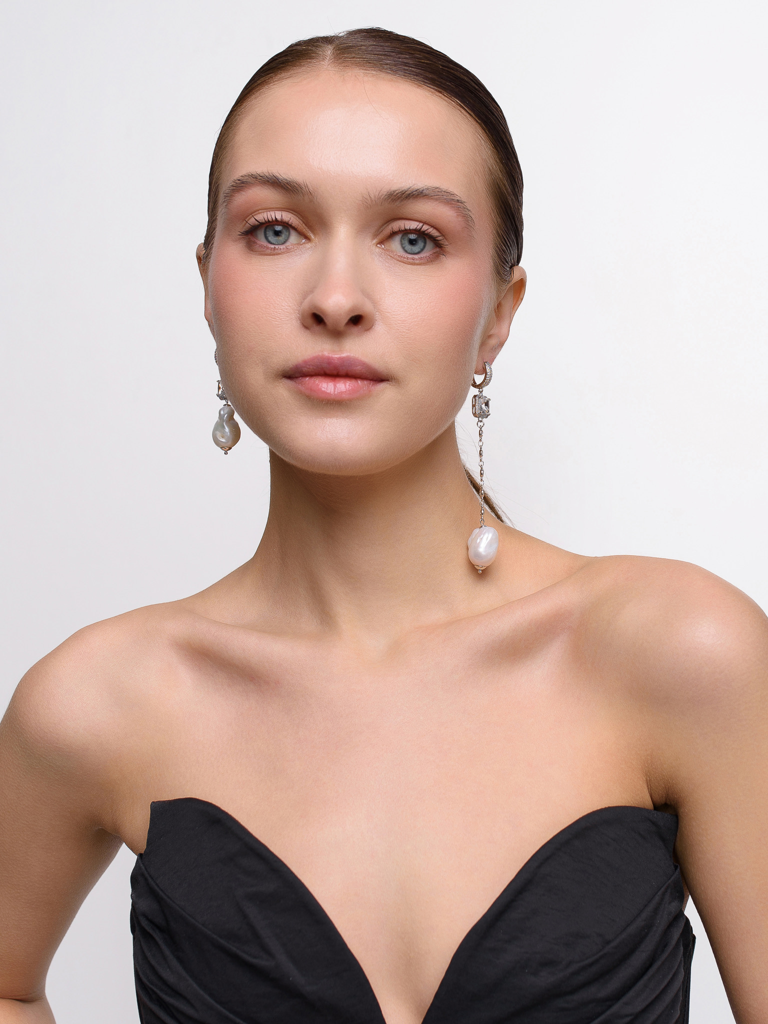 Серьги "Caramel eye pearl" Silver