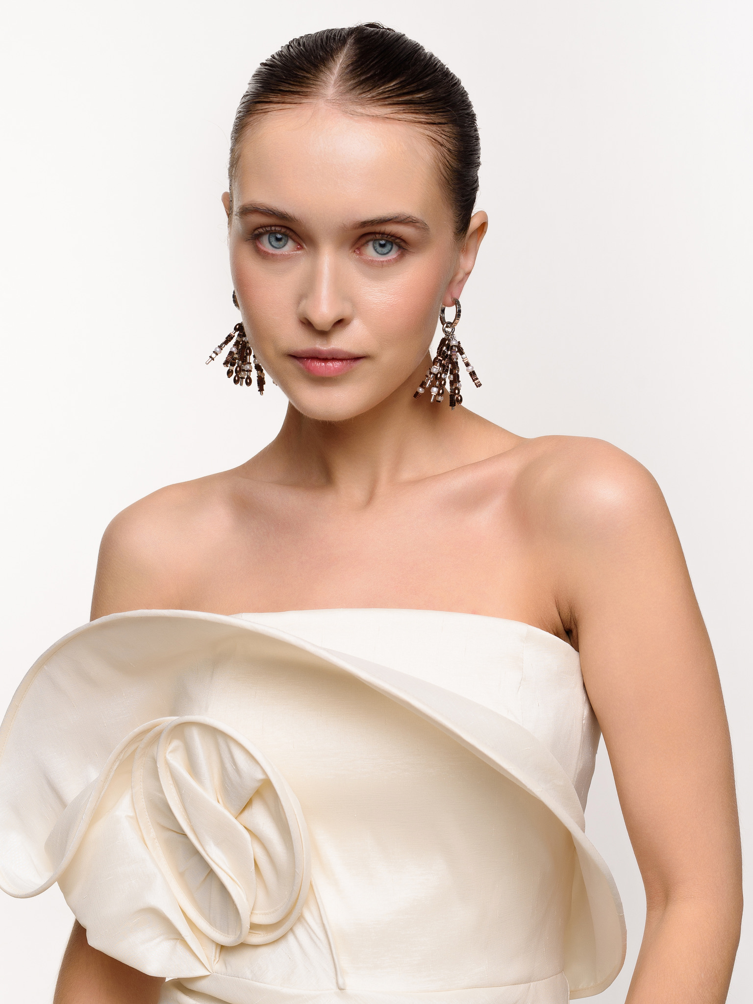 Серьги "Grain brown pearl brush" Silver