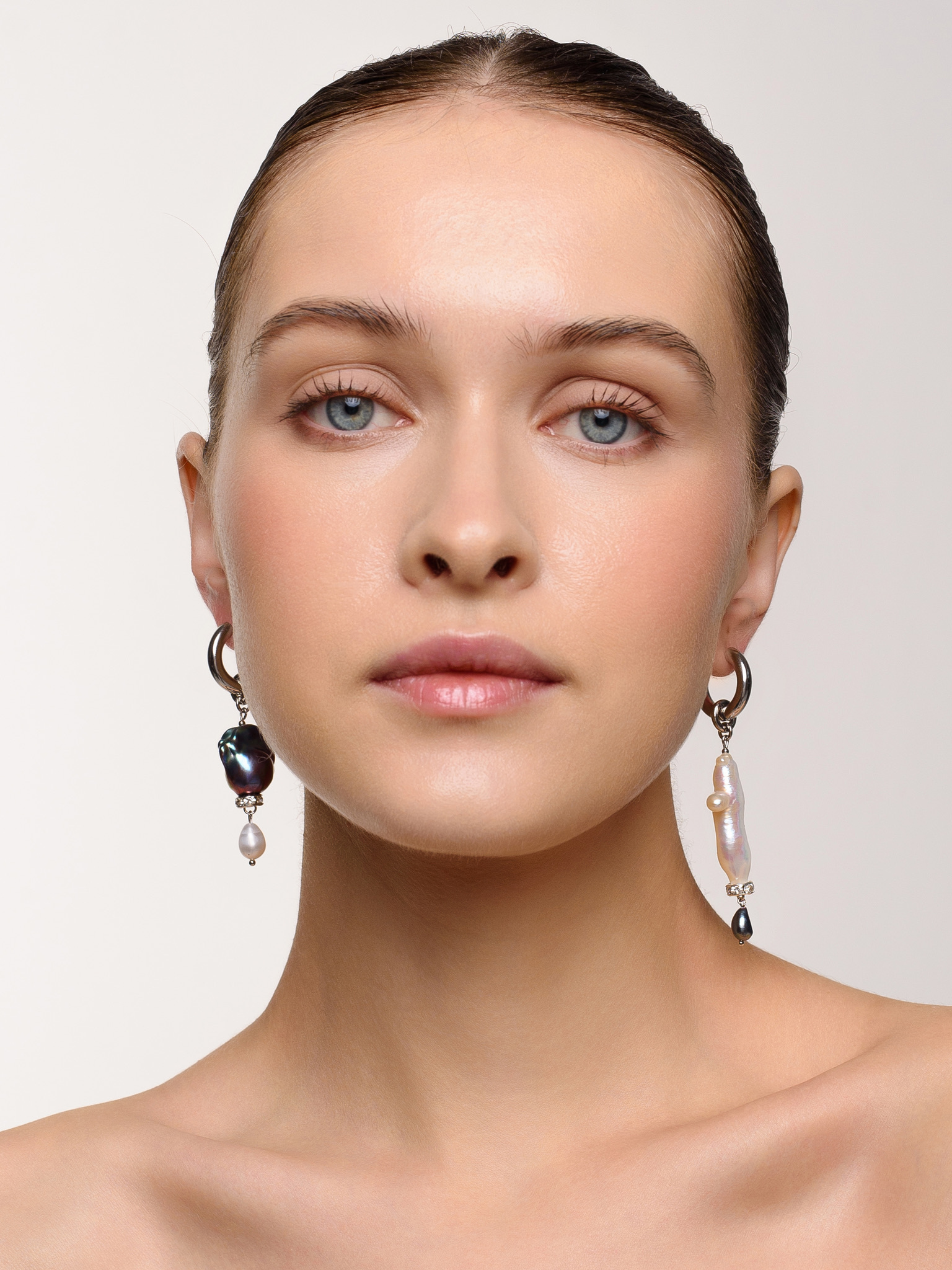 Серьги "Petrol & Pearl Cross" Silver