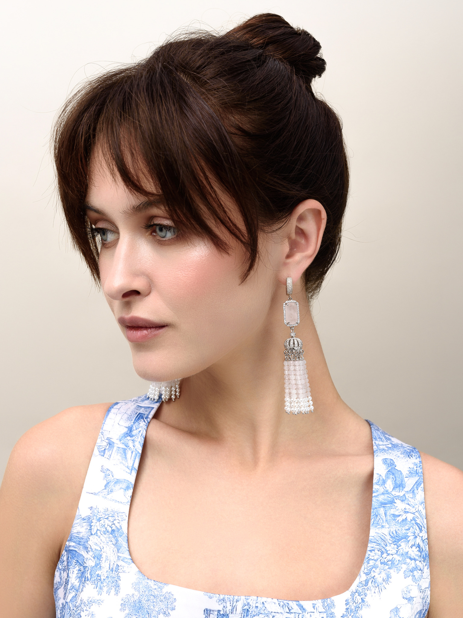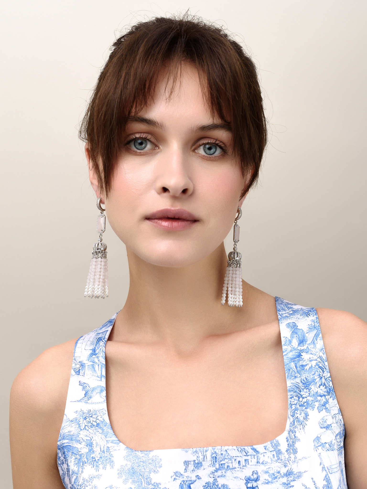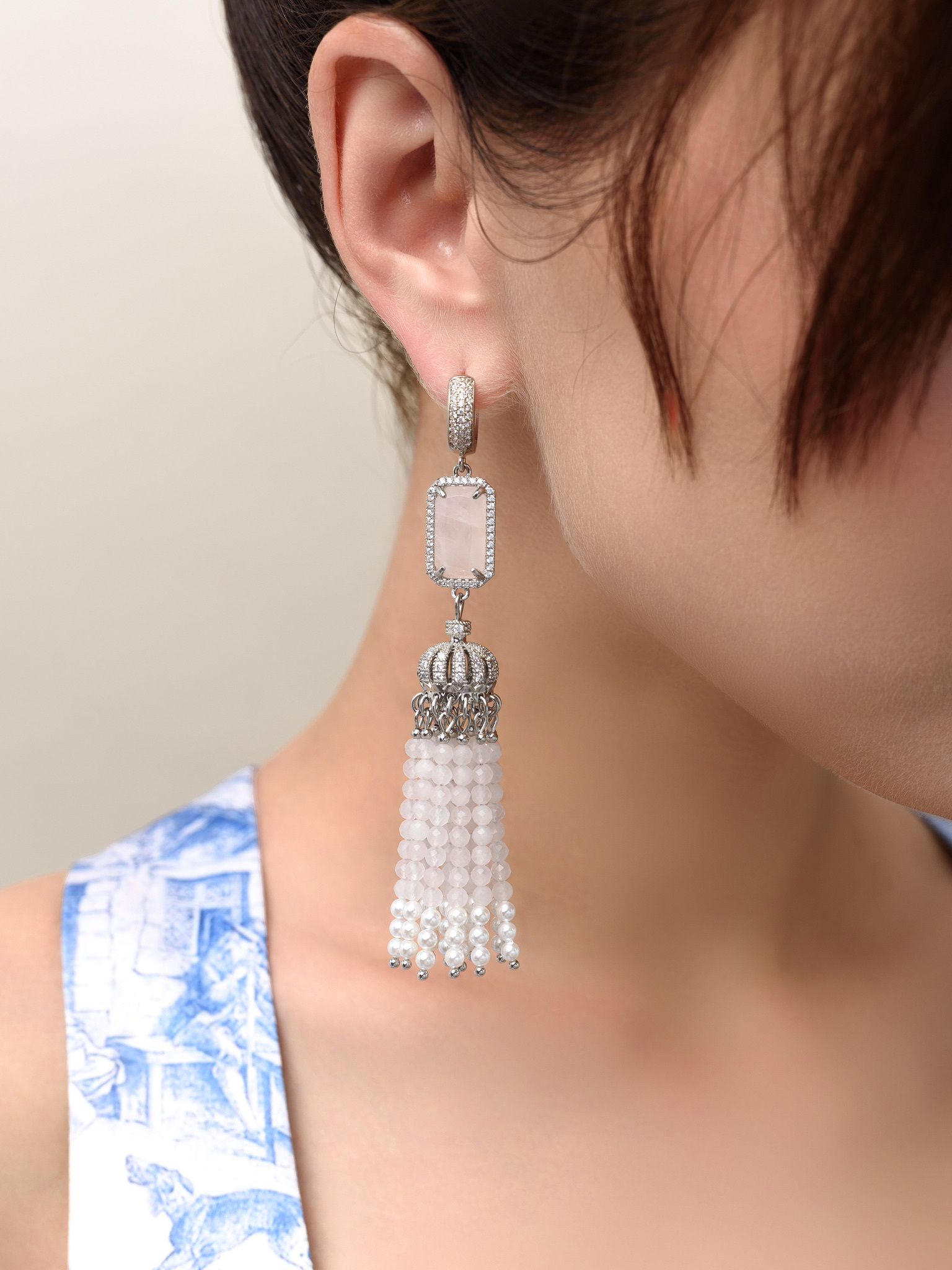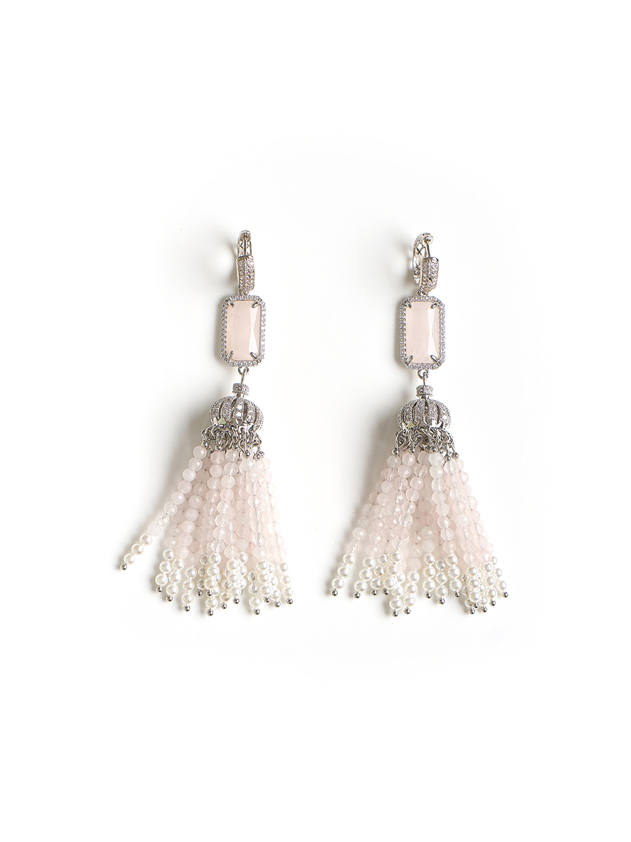 Серьги "Queen" из розового кварца и перламутра Silver