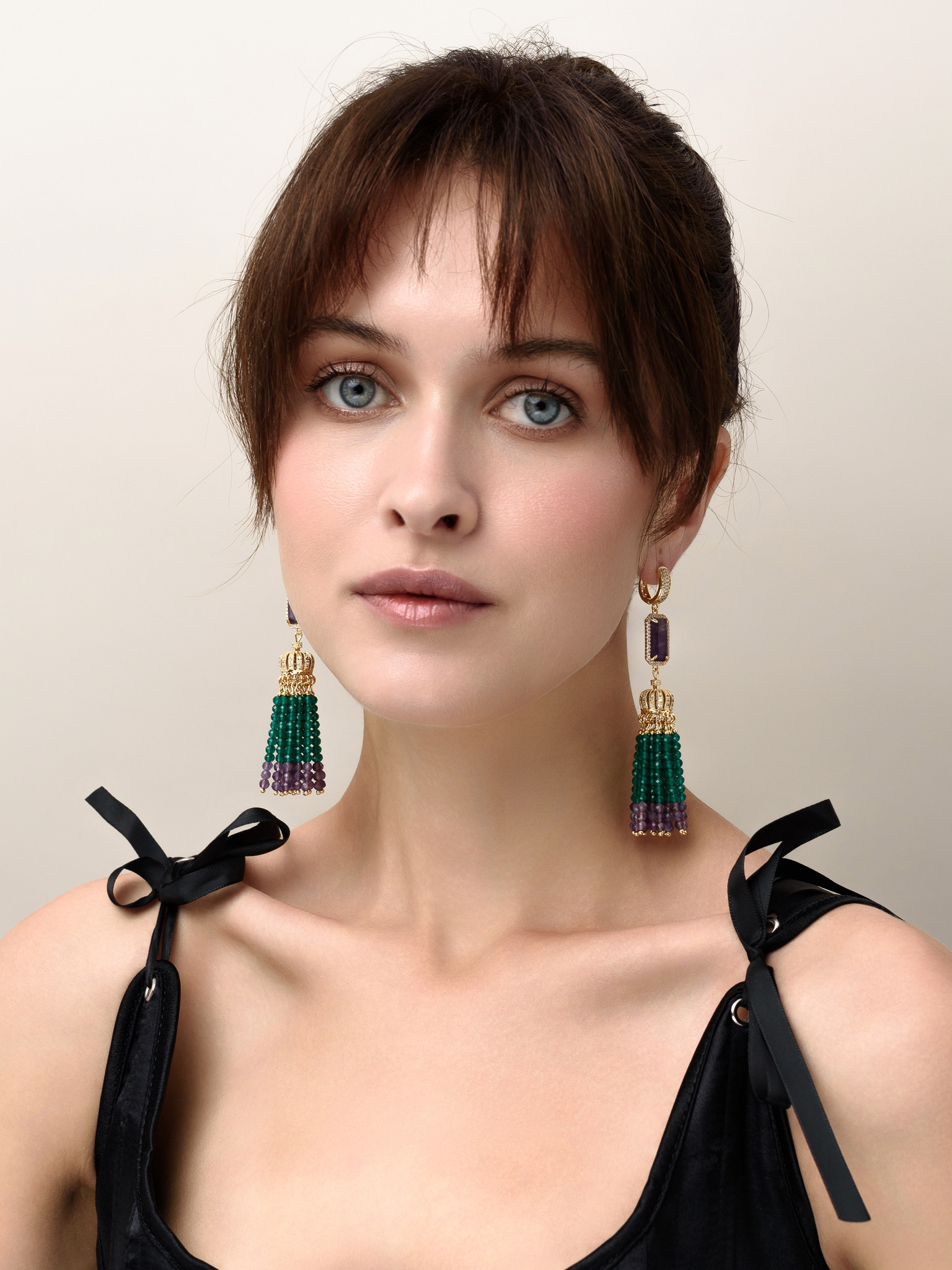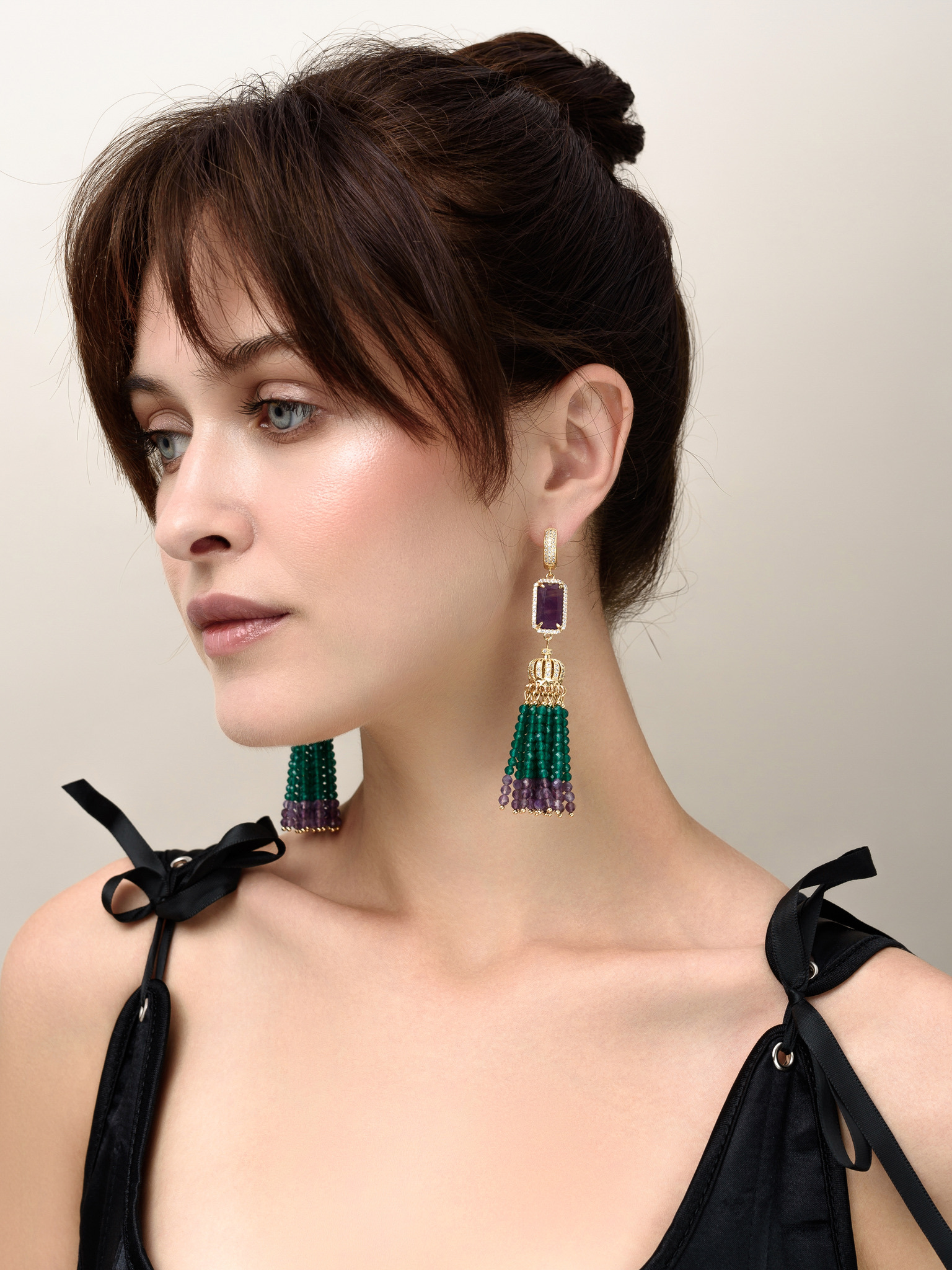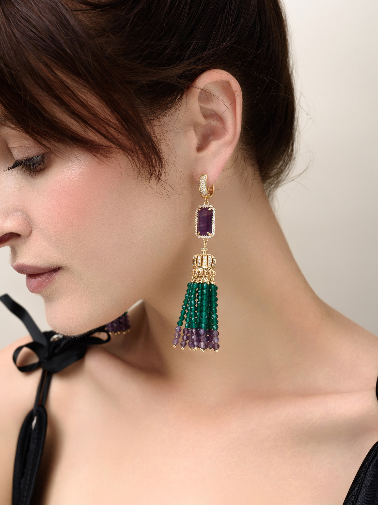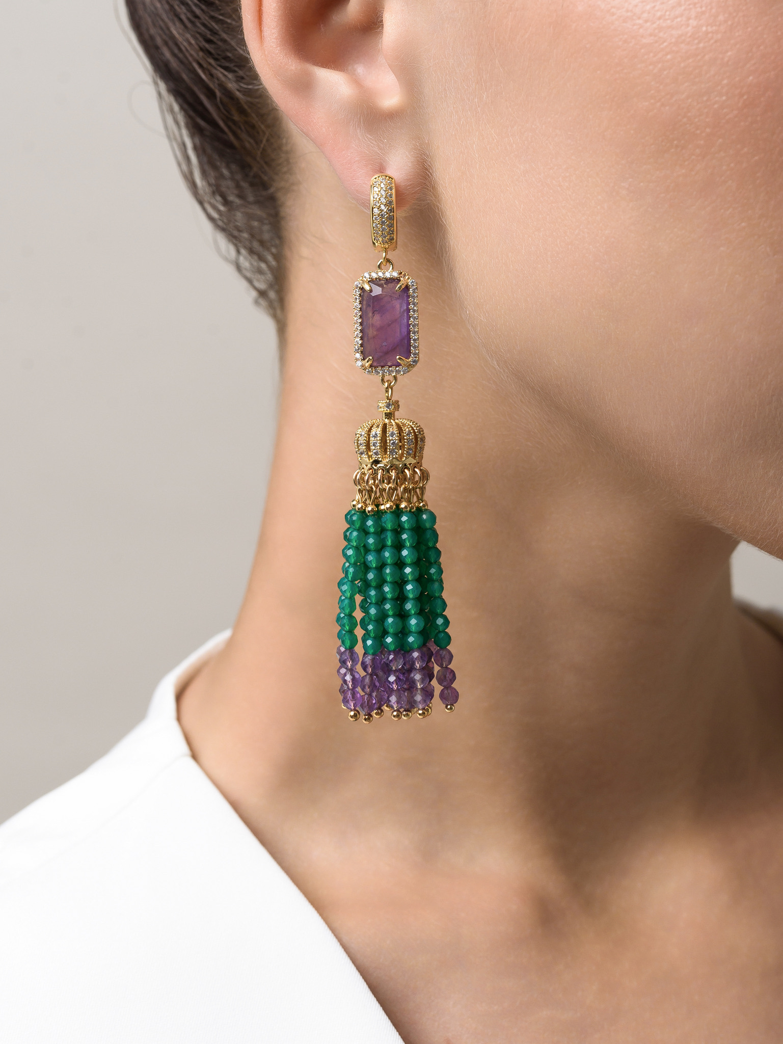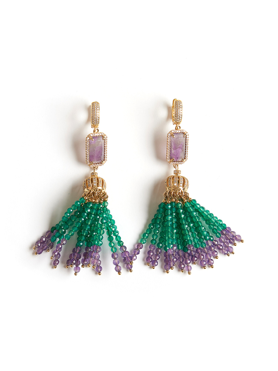 Серьги "Queen" из зеленого агата и аметиста Gold