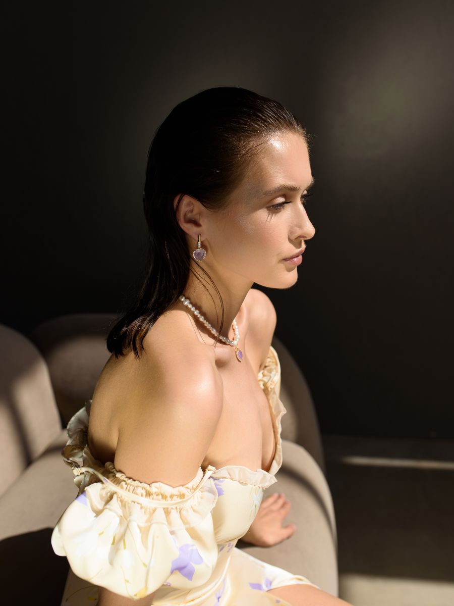 Серьги "Royal Love" Gold c лавандовым аметистом