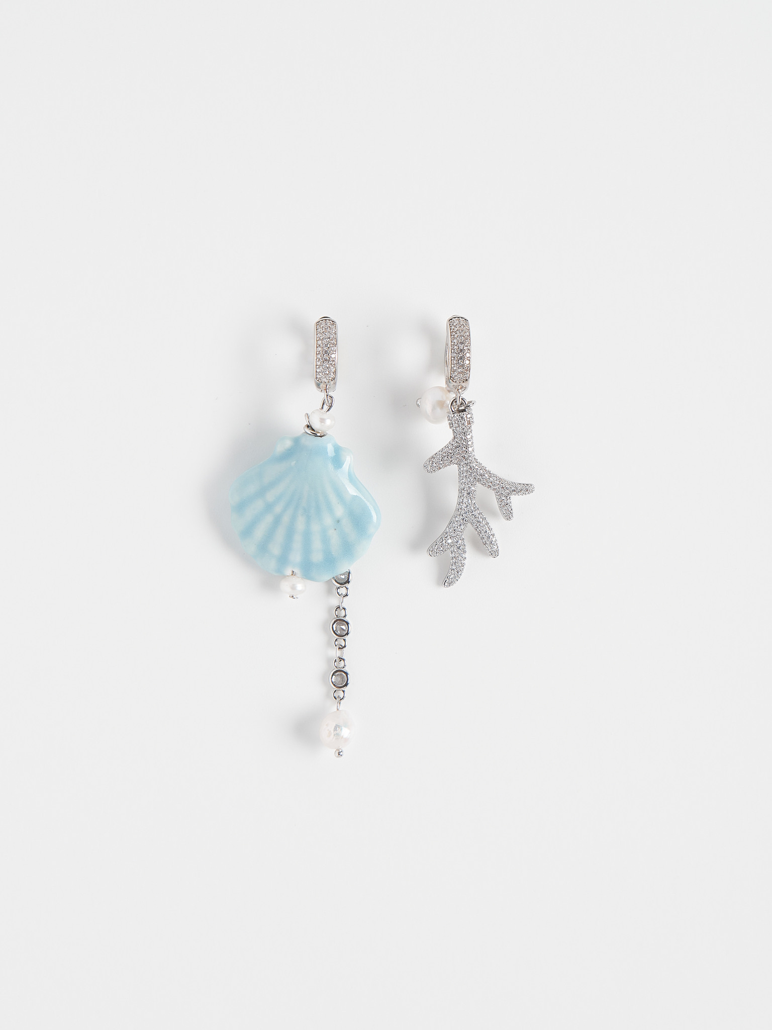 Серьги "Сeramics shell blue coral " Silver