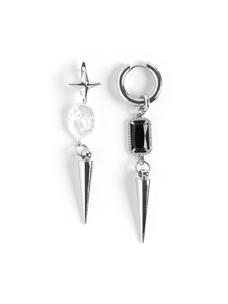 Серьги "Star pearl thorn" c черным агатом Silver