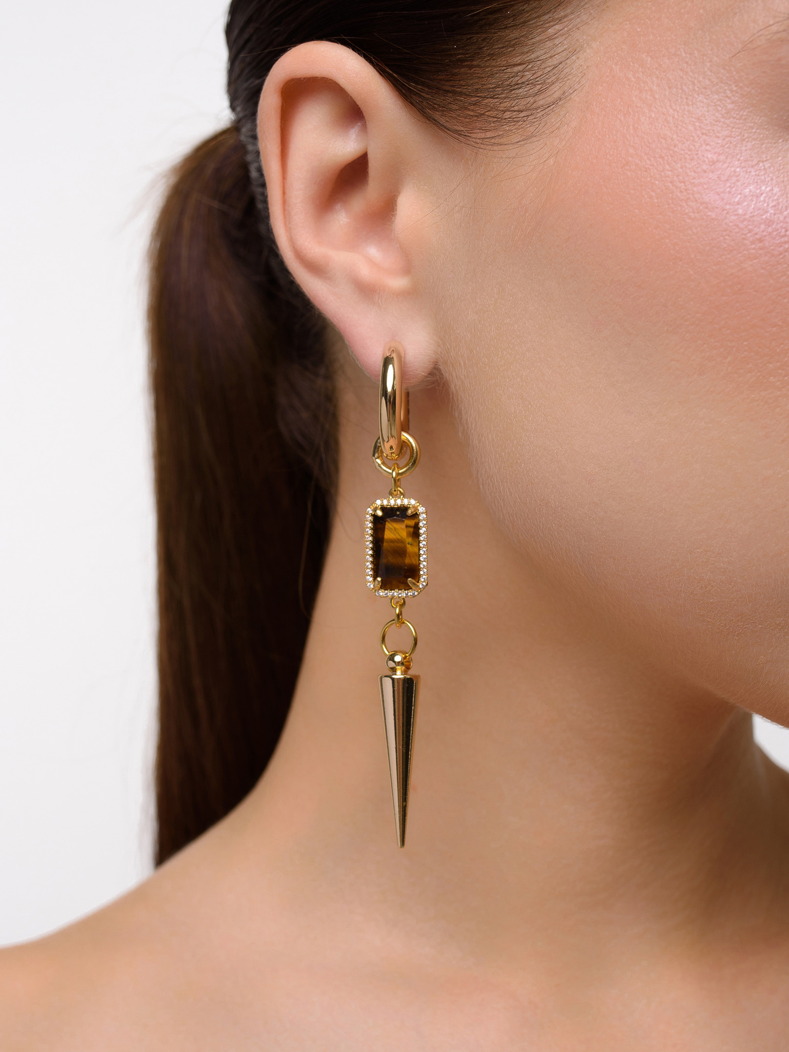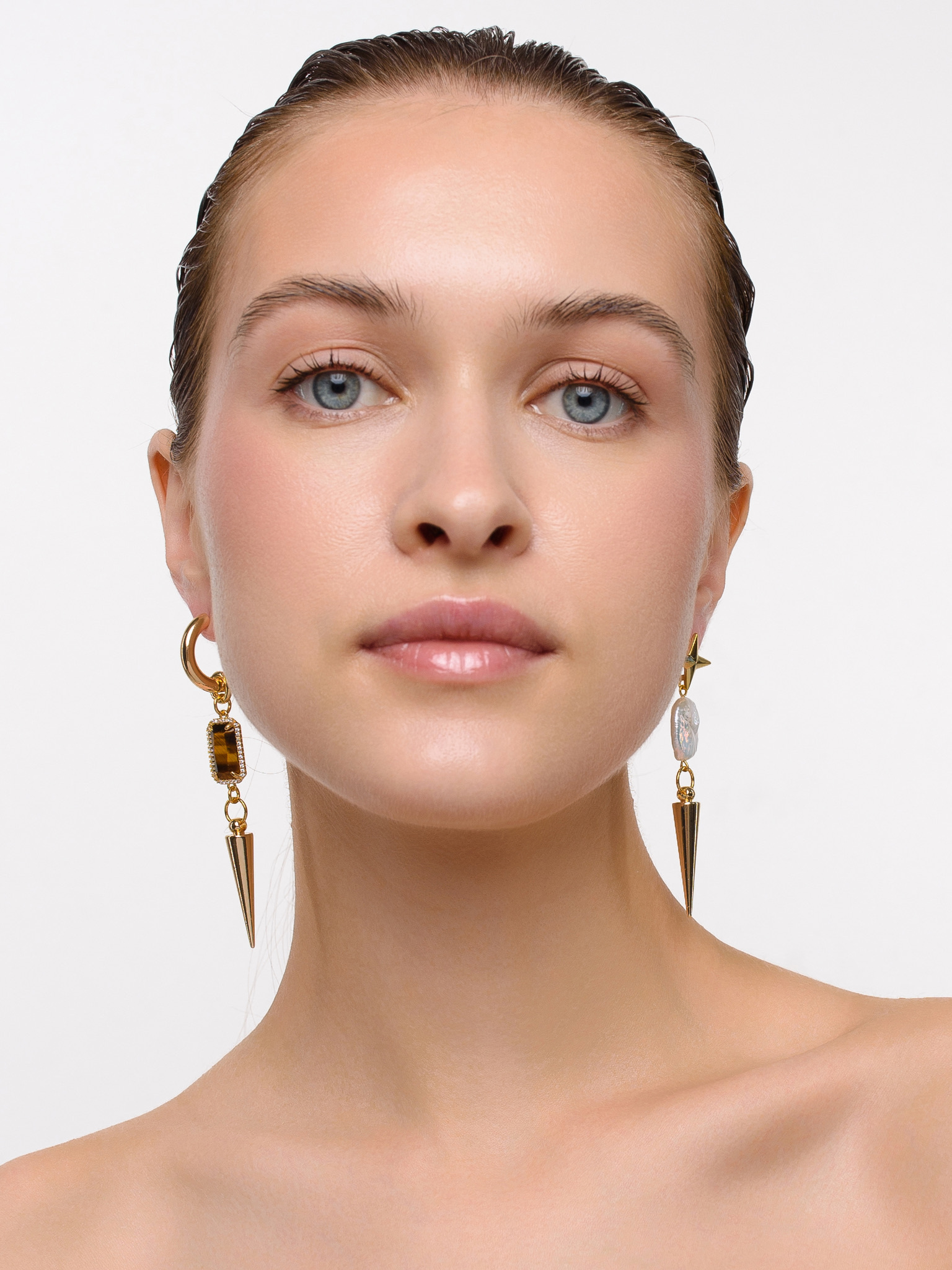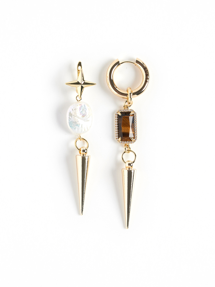 Серьги "Star pearl thorn" c тигровым глазом Gold