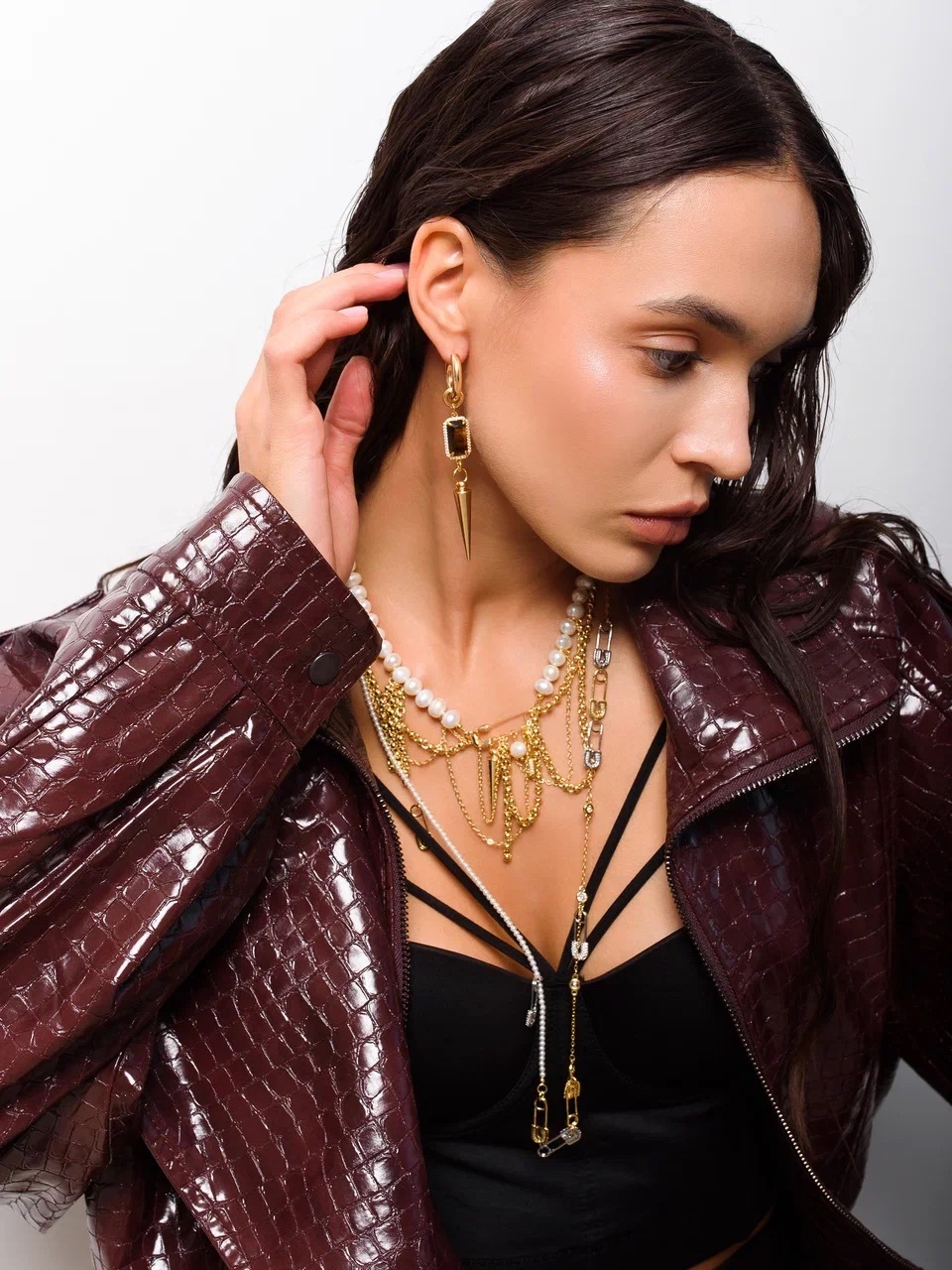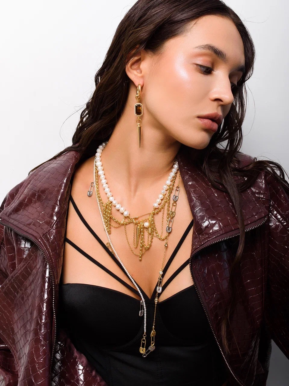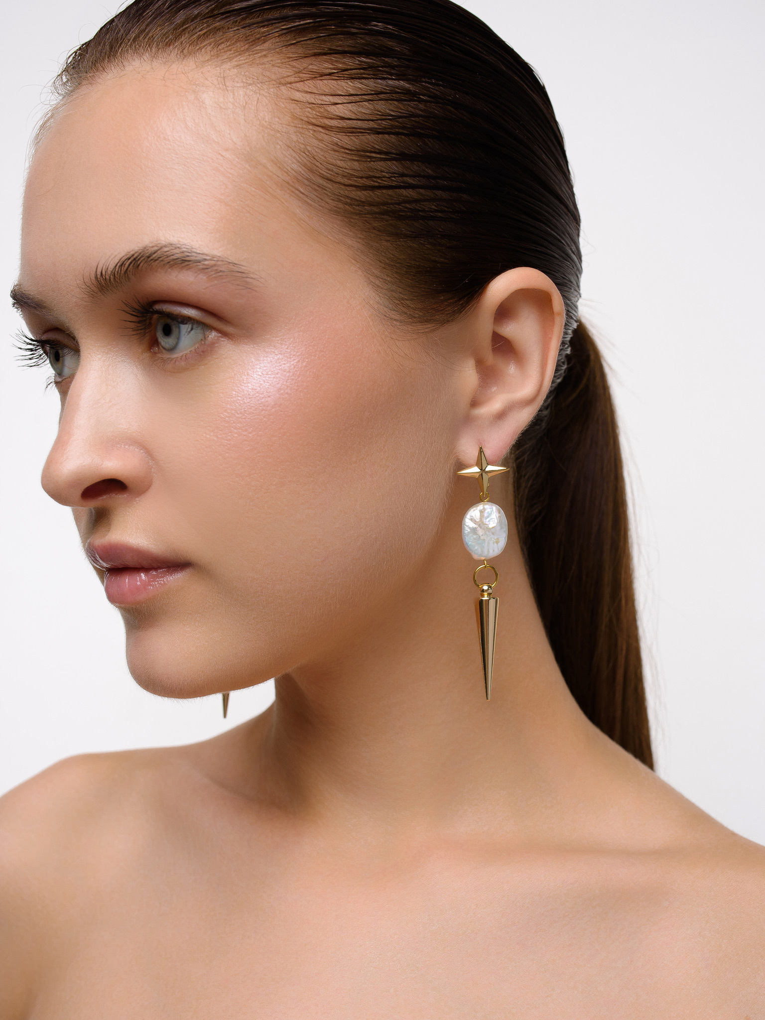 Серьги "Star pearl thorn" c тигровым глазом Gold