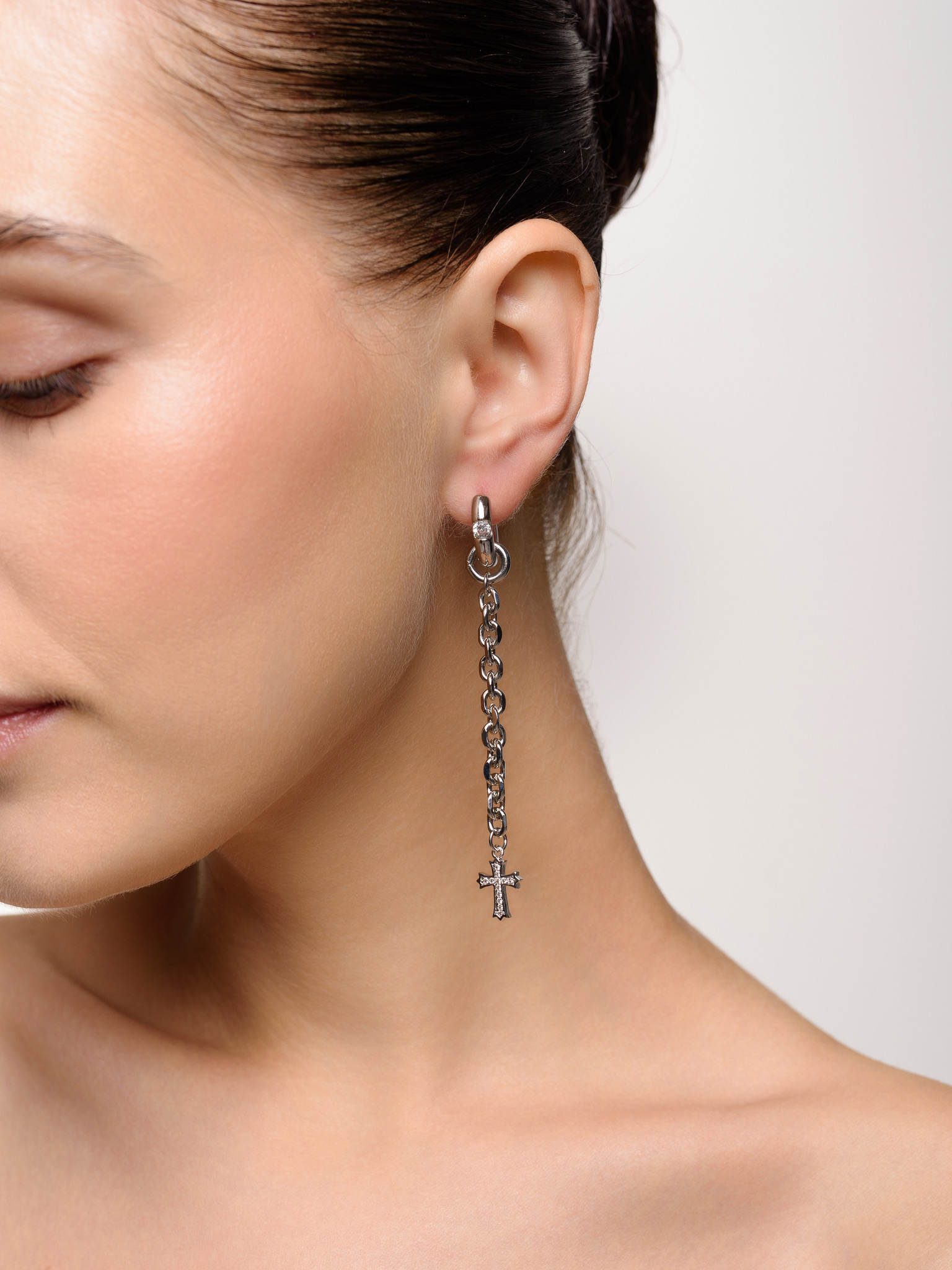 Серьги "Thorn Cross crystal" Silver