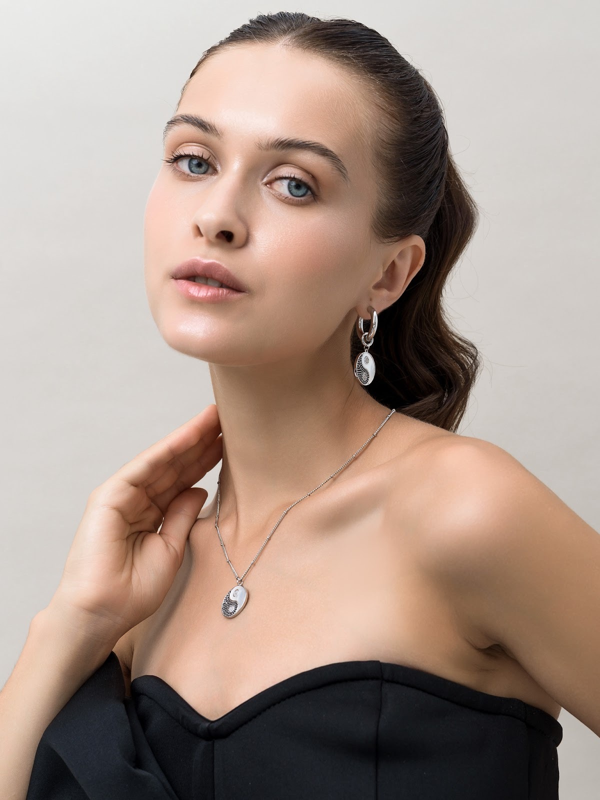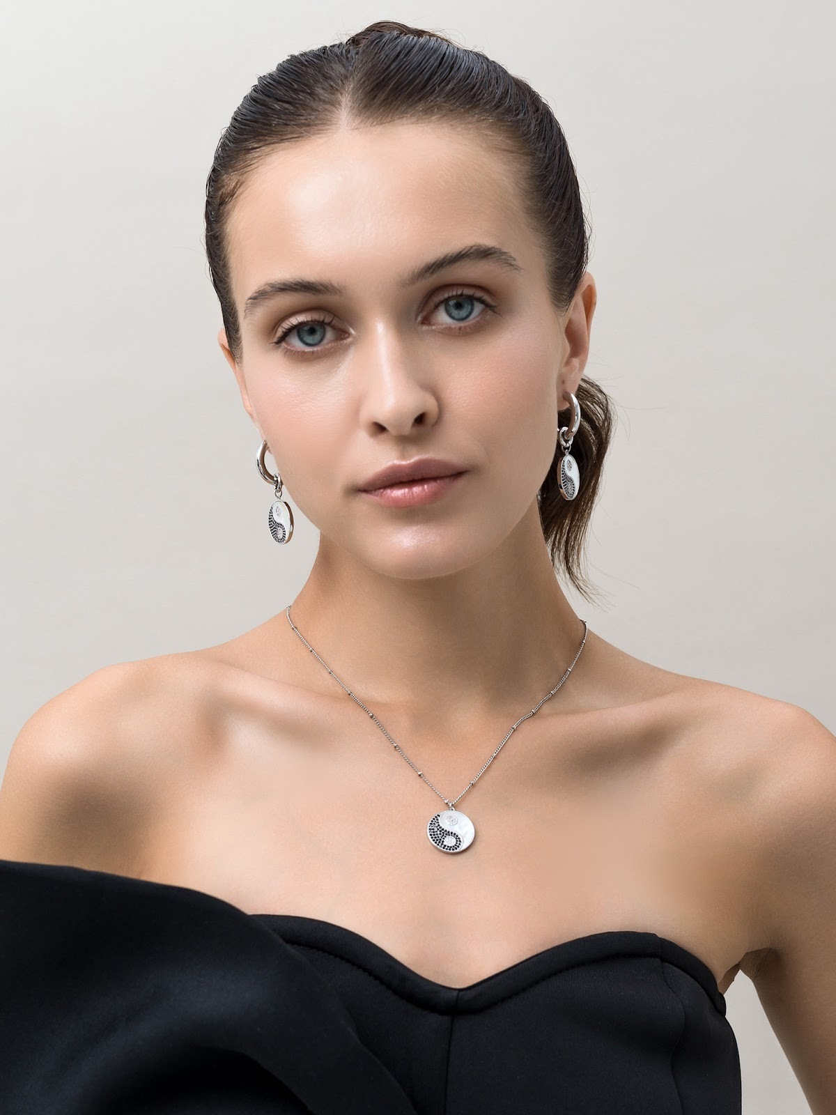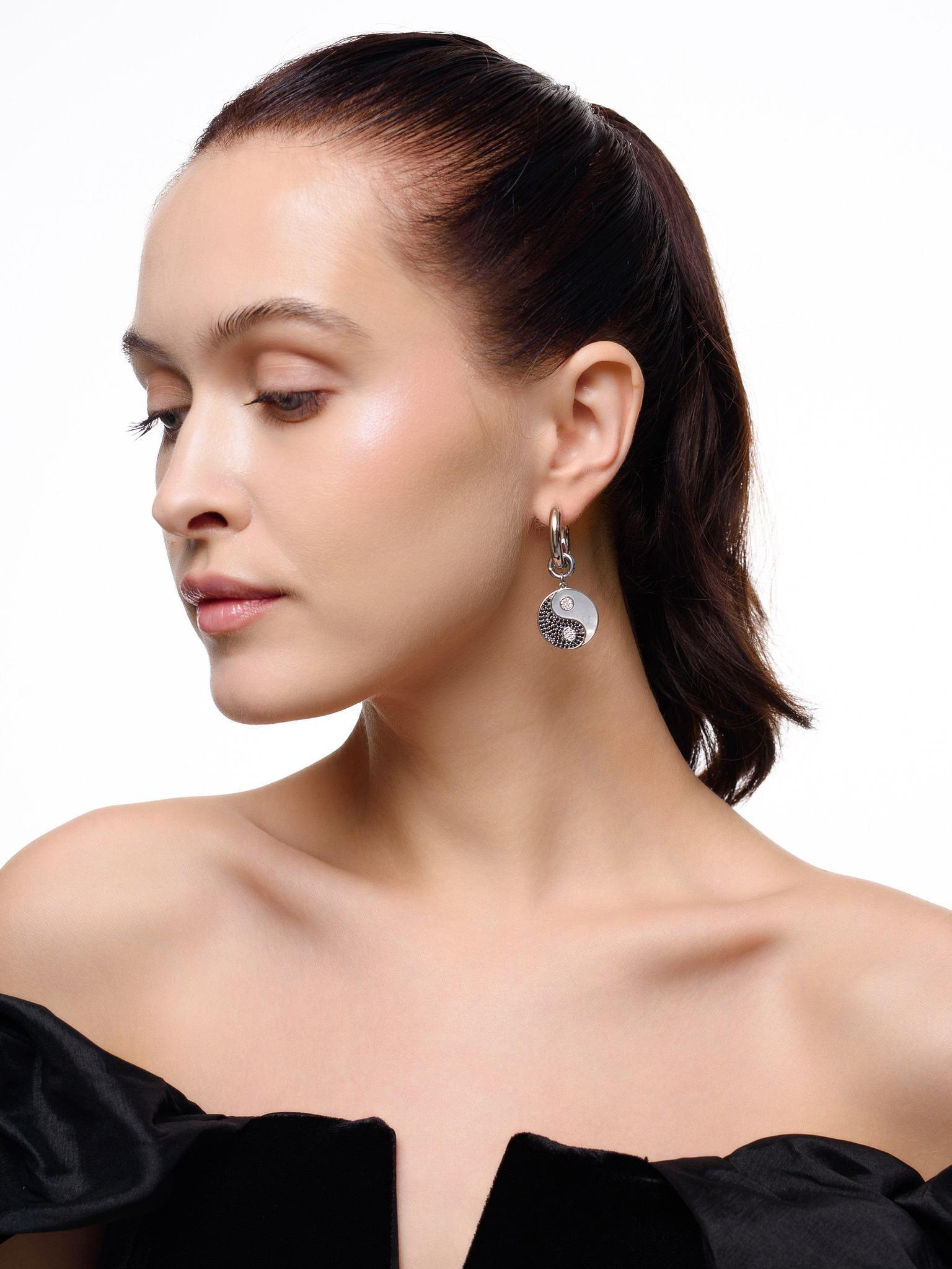 Серьги "Yin Yang" с перламутром Silver
