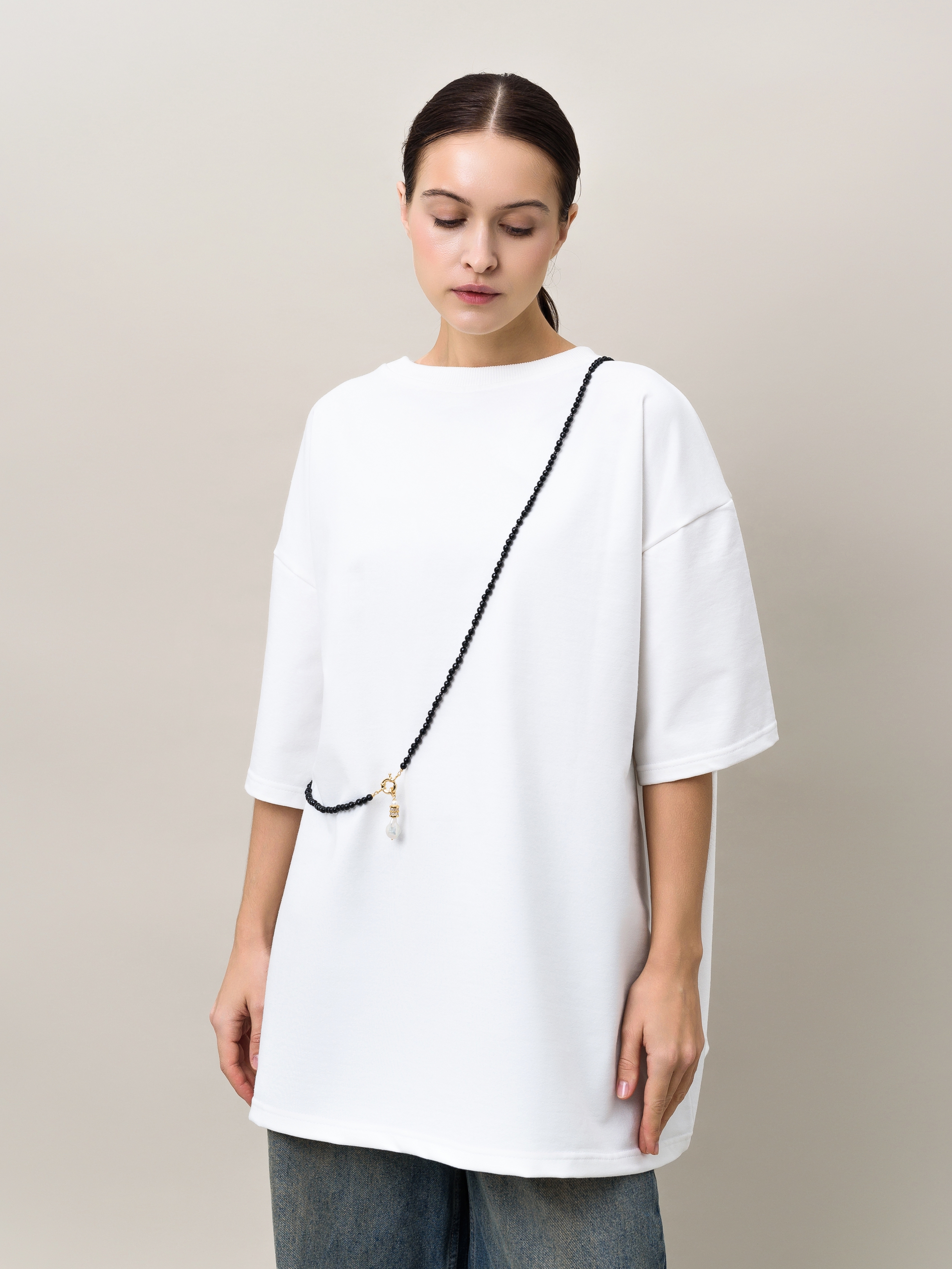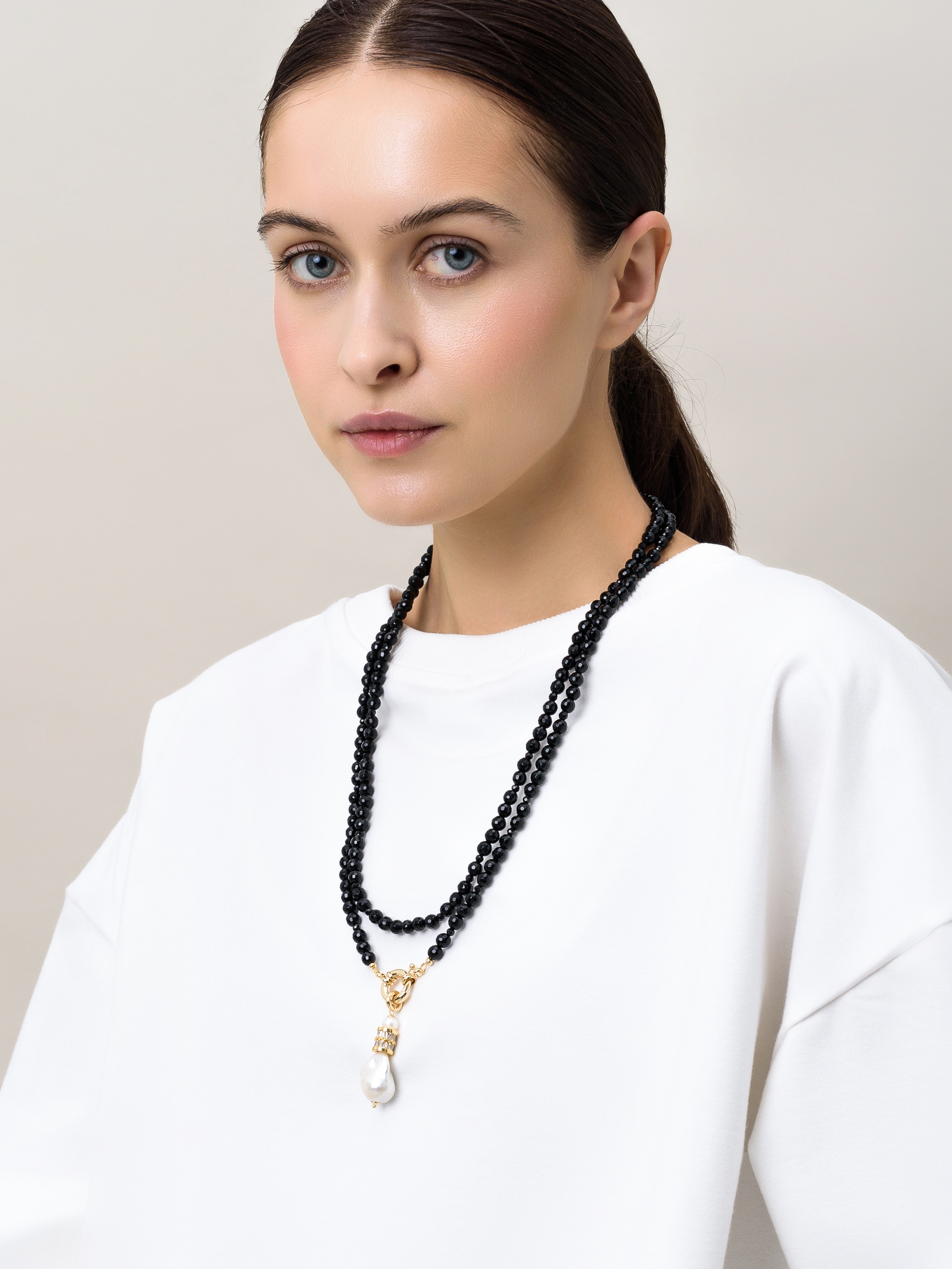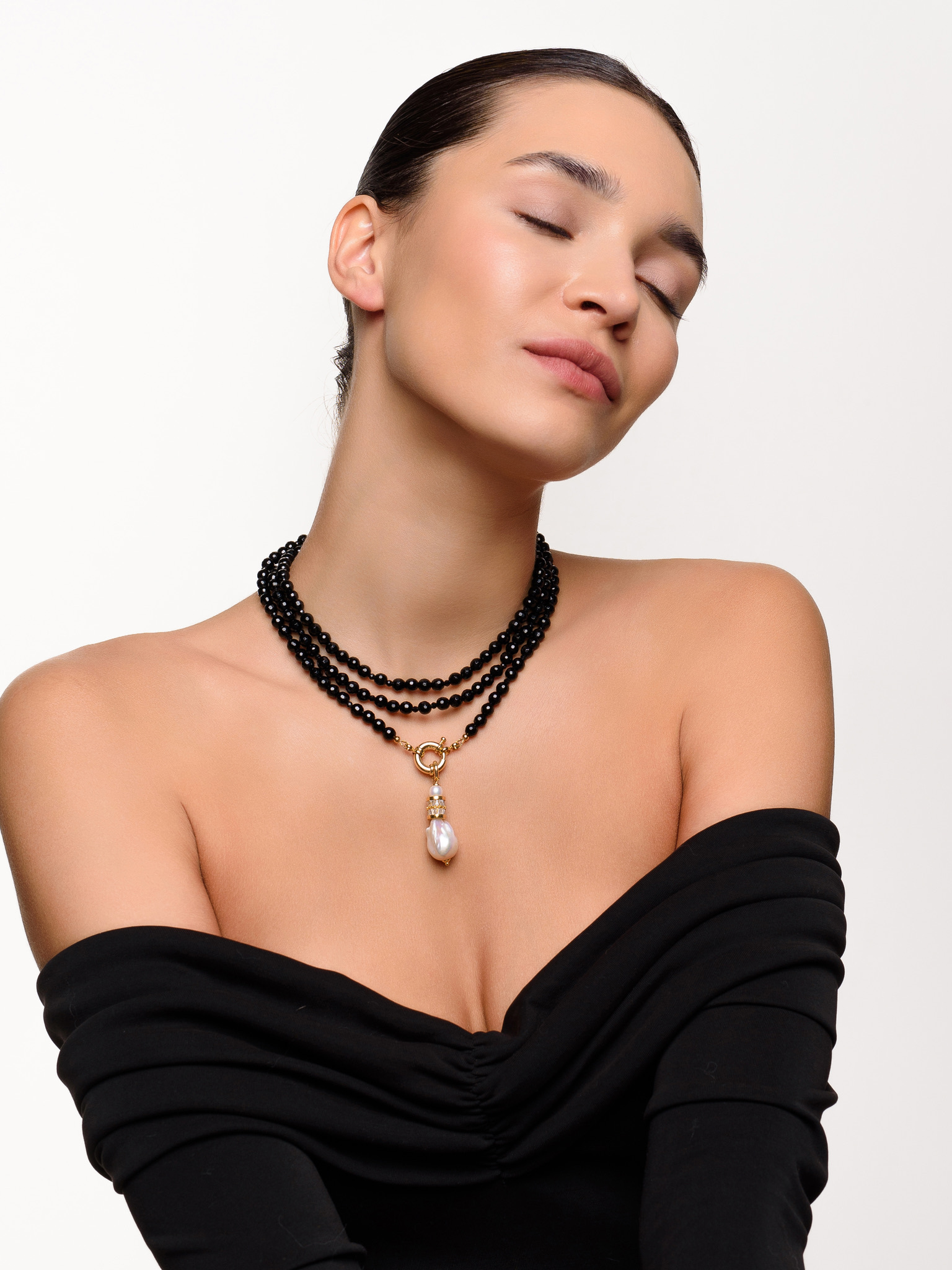 Сотуар из Чёрного агата "Long Pearl" Gold