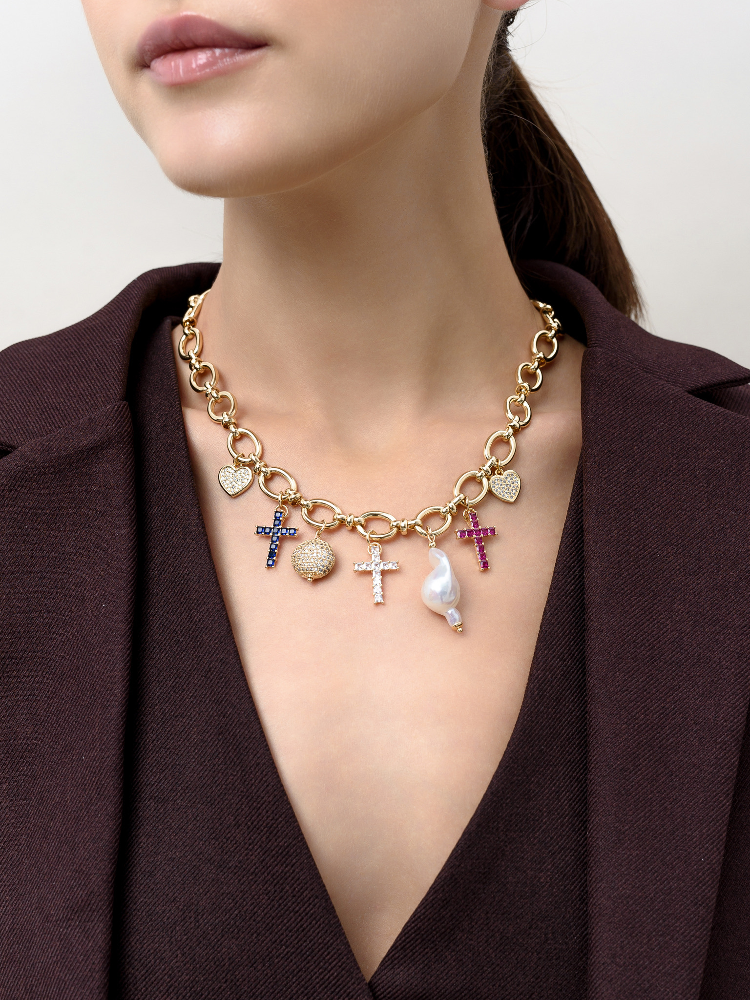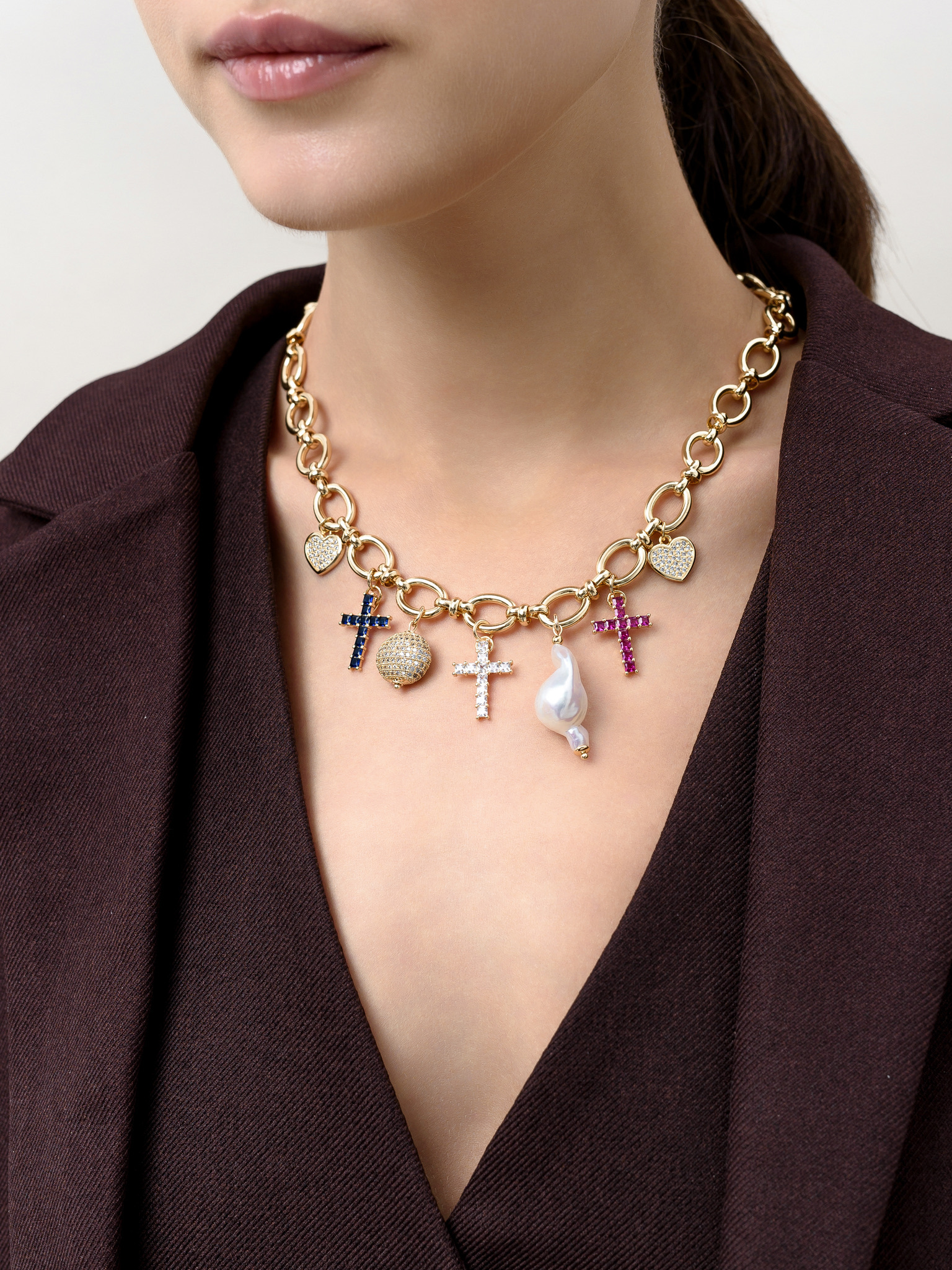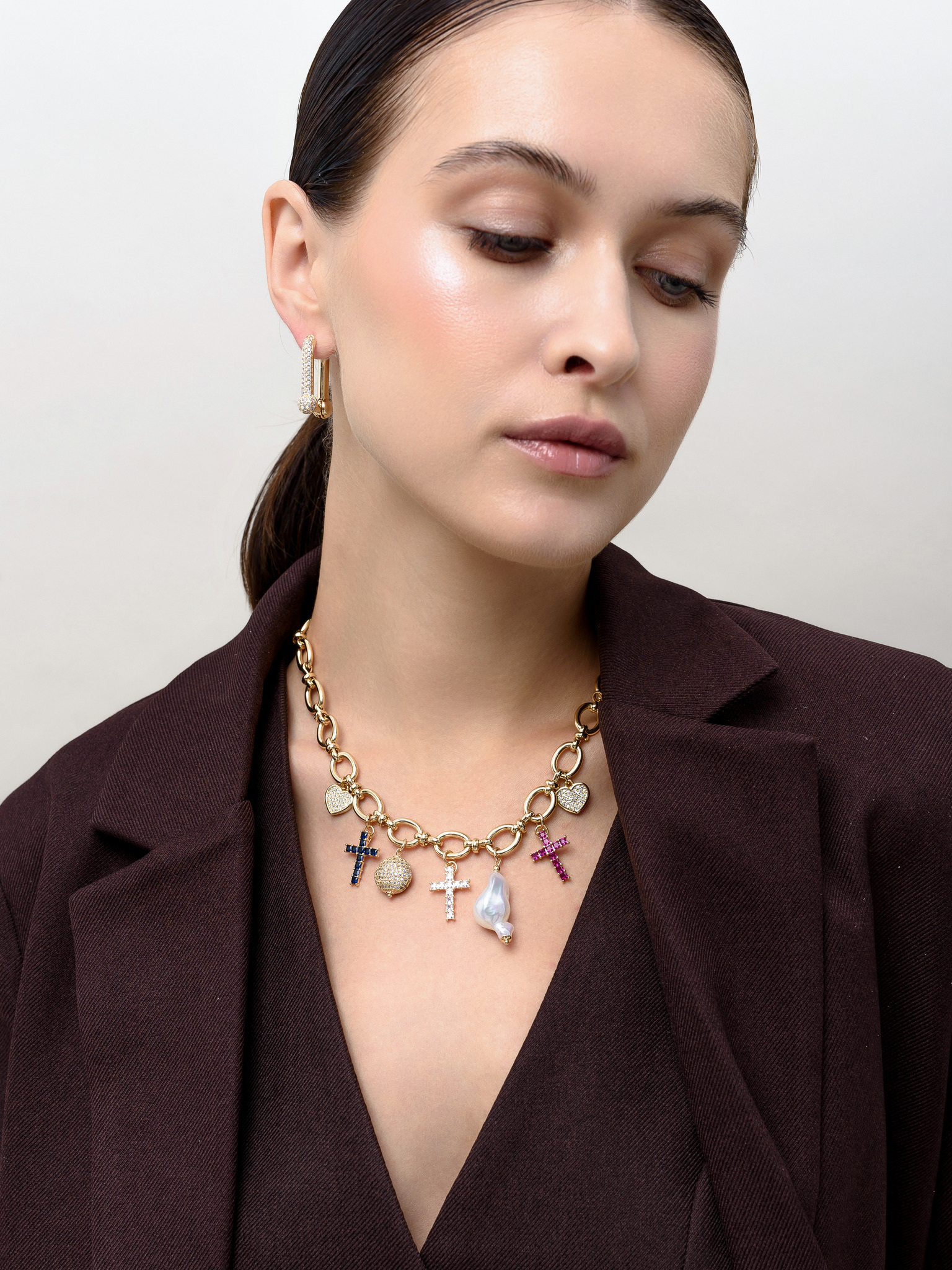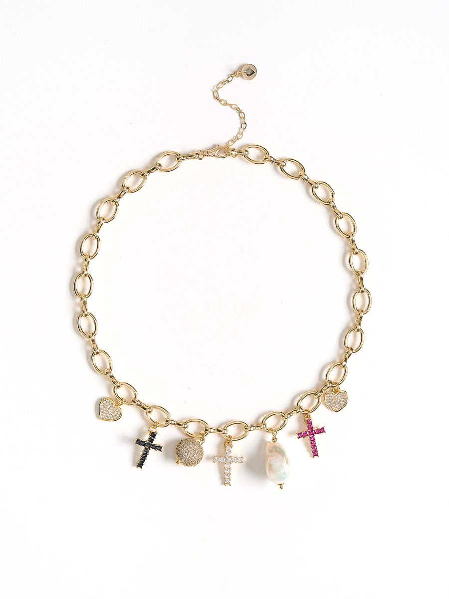 Цепь "Love Cross" Multi с жемчужиной Gold